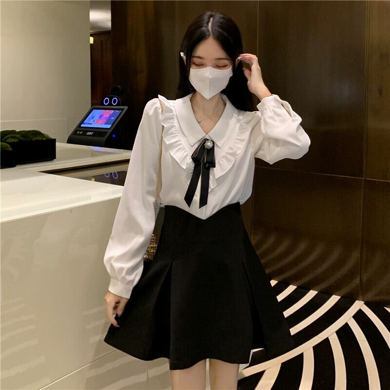 白いシャツ初秋の新しいスタイルのフランスの純粋な欲望のカレッジスタイルのデザインニッチシックな長袖トップ ロング ホワイト オータム 秋物 ピュア missk22041117521