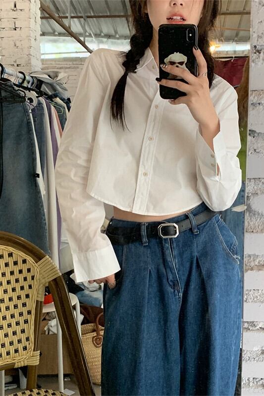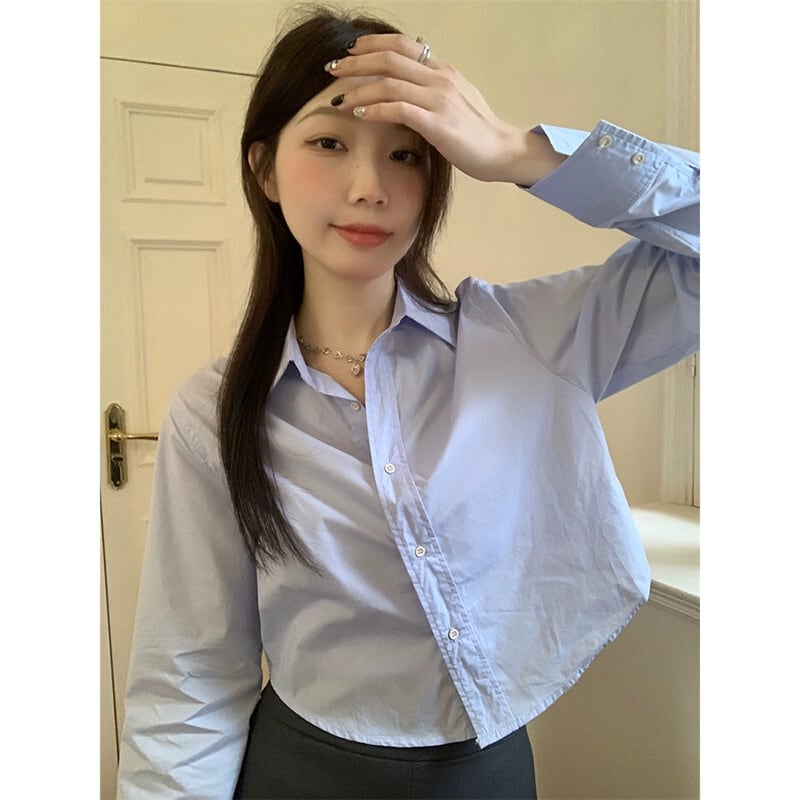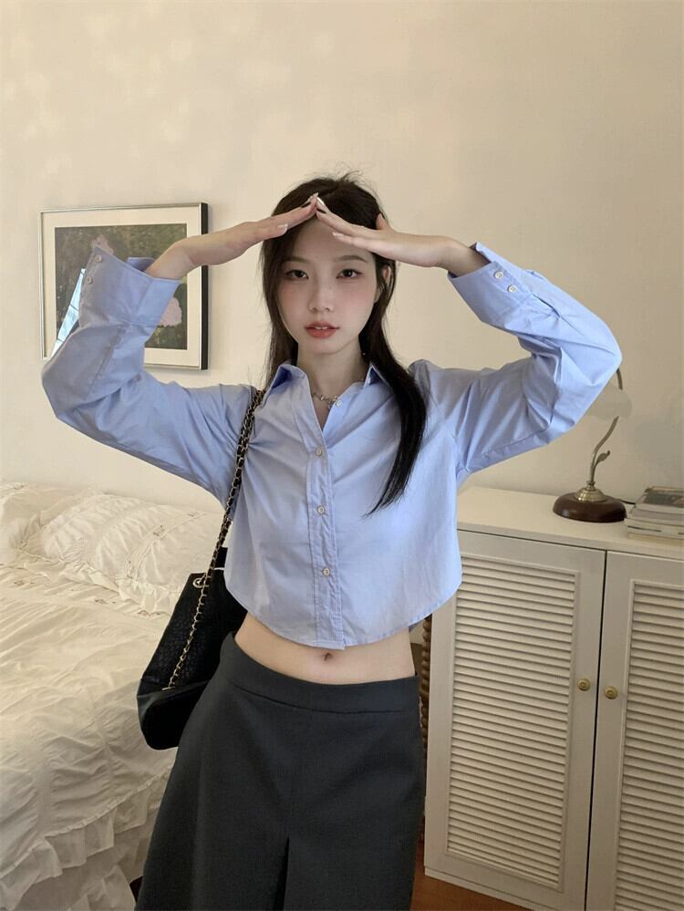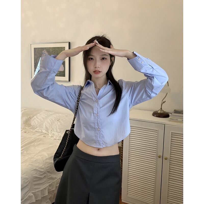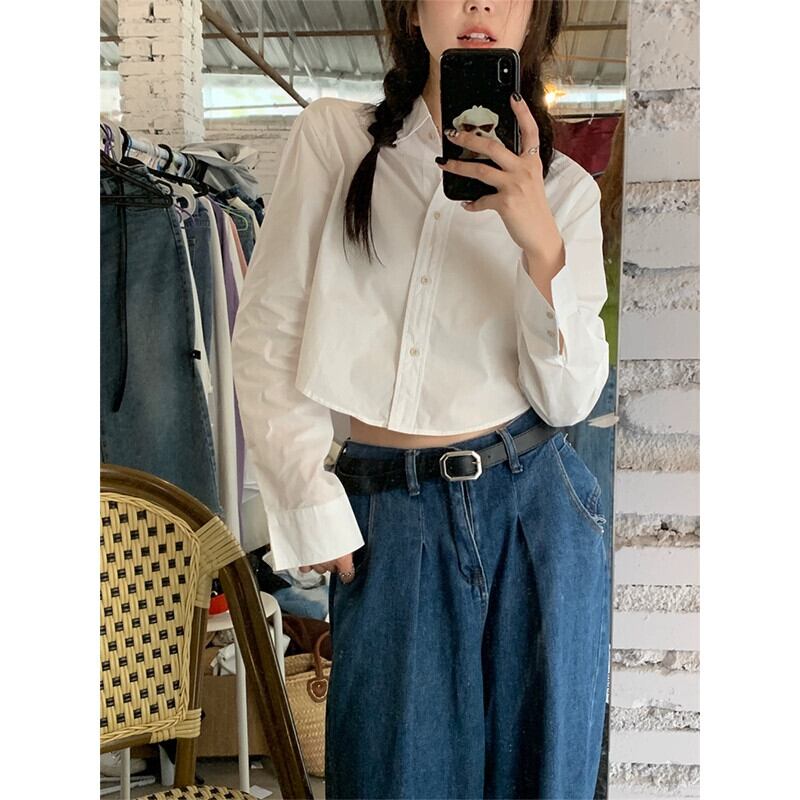 2024 年秋の新しいレトロな香港スタイルのデザインの短い白いシャツの女性スリムスリム長袖トップ ショート ロング ホワイト オータム 秋物 missk86322698384