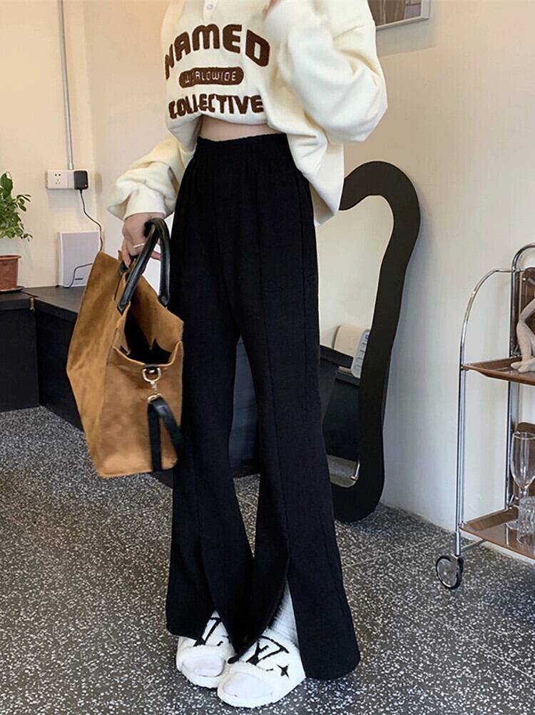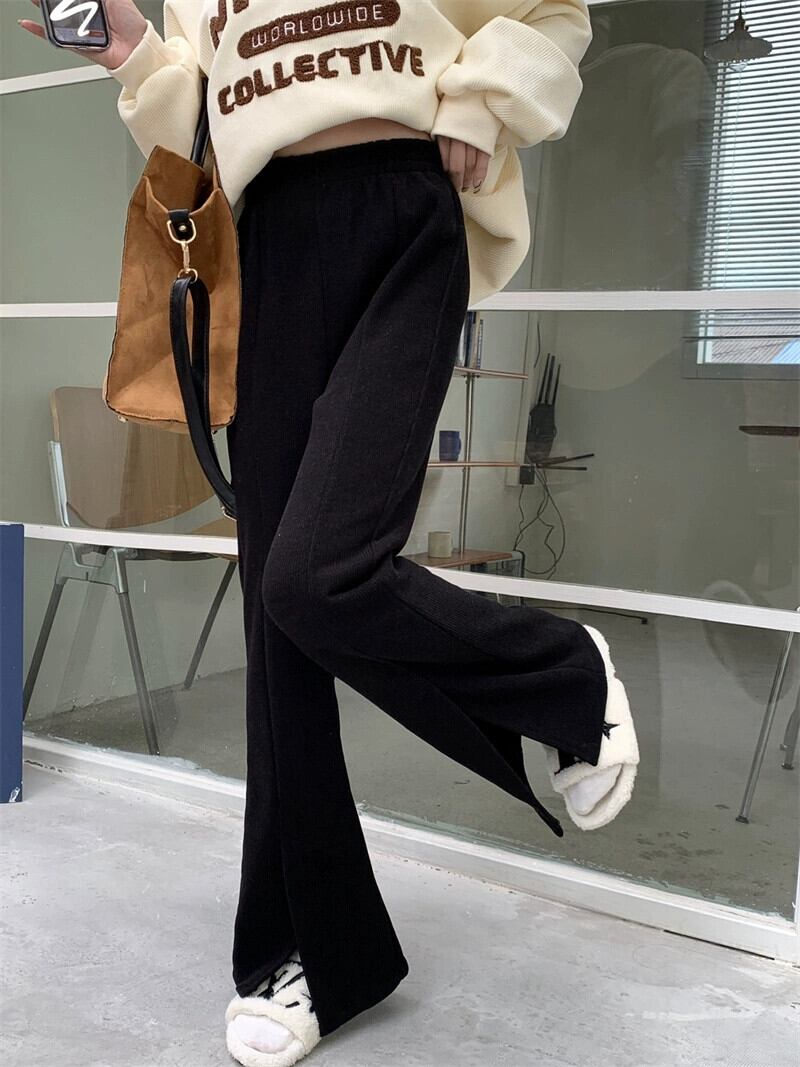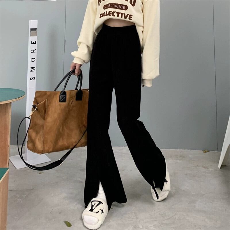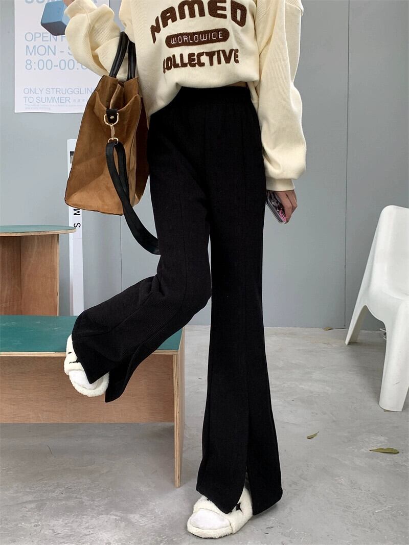 ベルベットスリットマイクロフレアパンツ秋 2024 新しいハイウエスト肥厚カジュアルパンツ小さなインズボン婦人服 レッド オータム 秋物 missk91716238887