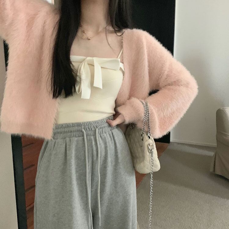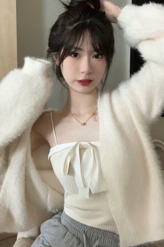 色:ニットベスト,白いぬいぐるみカーディガン,ピンクのぬいぐるみカーディガン