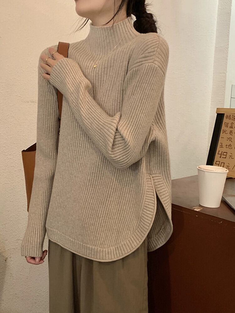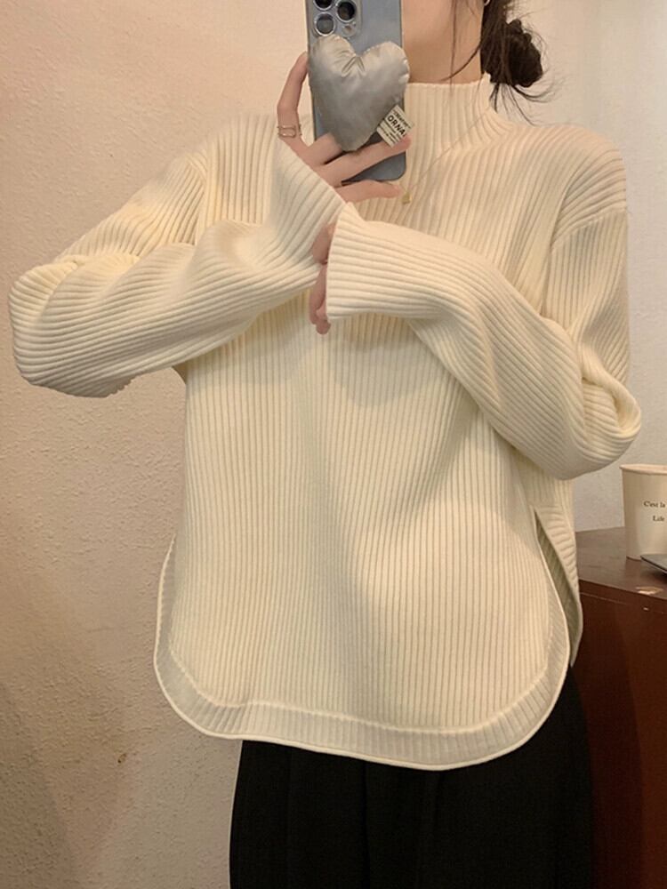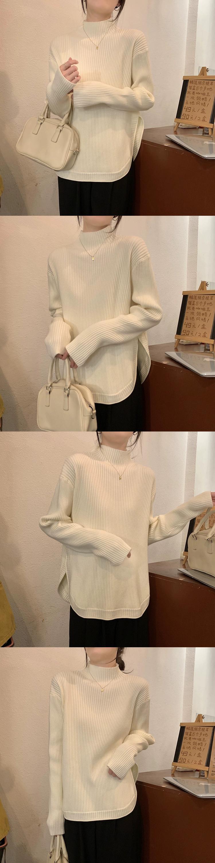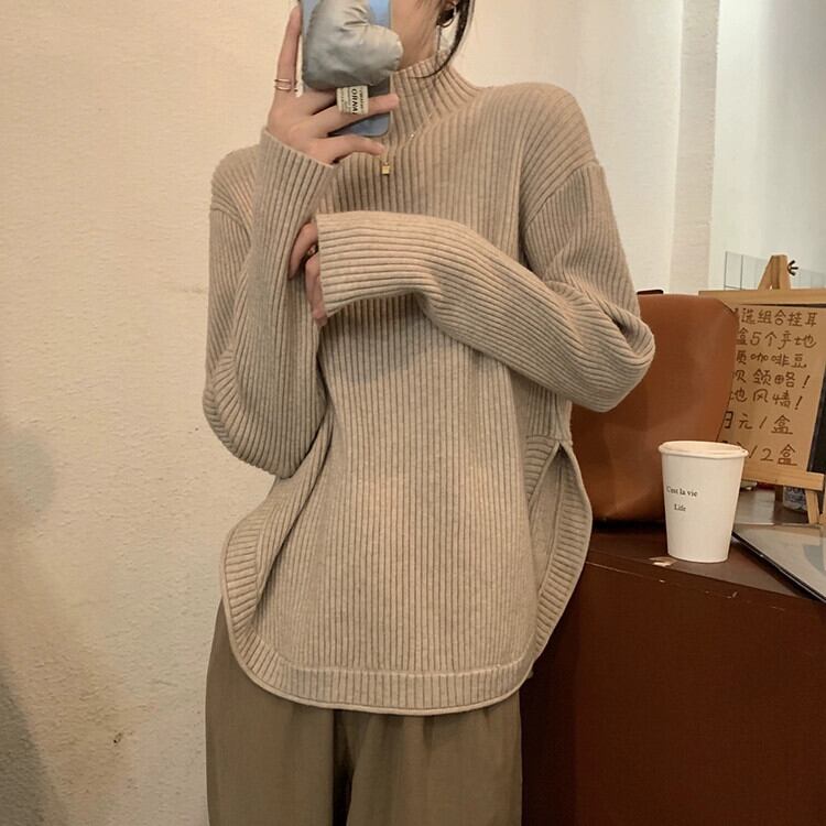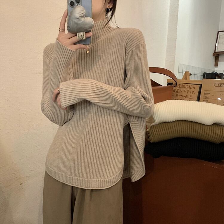 ハーフタートルネックスリットセーター女性秋バージョン 2024 新しい肥厚ルーズデザイン長袖トップ ロング オータム 秋物 missk42582997948