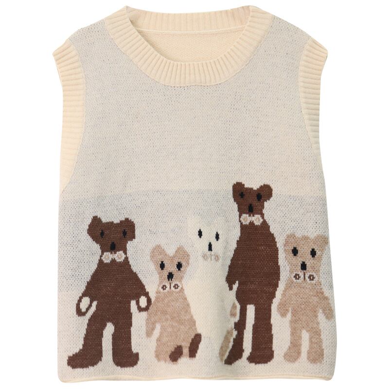 かわいいクマのベスト積み重ねニットベスト女性の秋 2024 ルーズセーターベストトップ 大人ガーリー スウィート キュート カジュアル オータム 秋物 missk40272743201