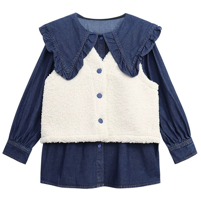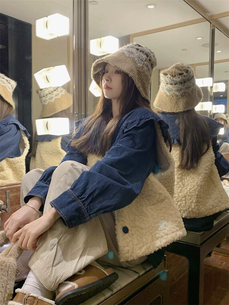 模造ラムウールベストジャケット + デザイナー人形襟デニムシャツ女性秋 2024 新しいファッションスーツ オータム 秋物 missk37886307208