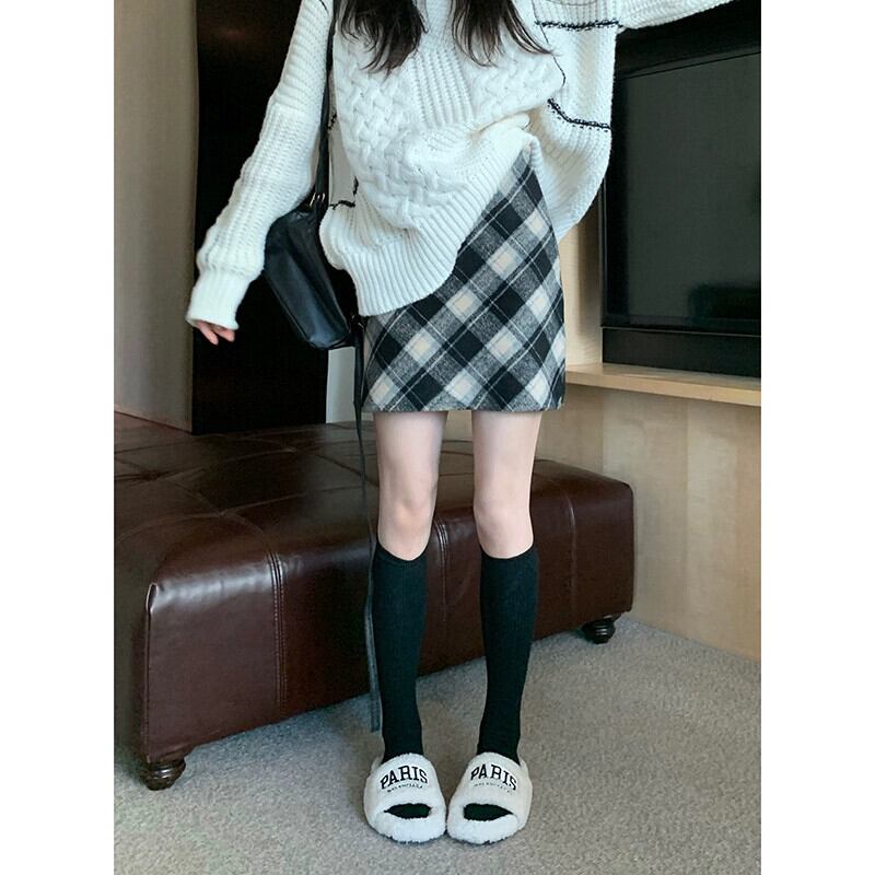 レトロ肥厚ウールスカート女性の秋と冬バージョン 2024 新しいハイウエスト痩身年チェック柄 A ラインスカート ハイウェスト オータム 秋物 ウィンター 冬物 Aライン missk18251528911