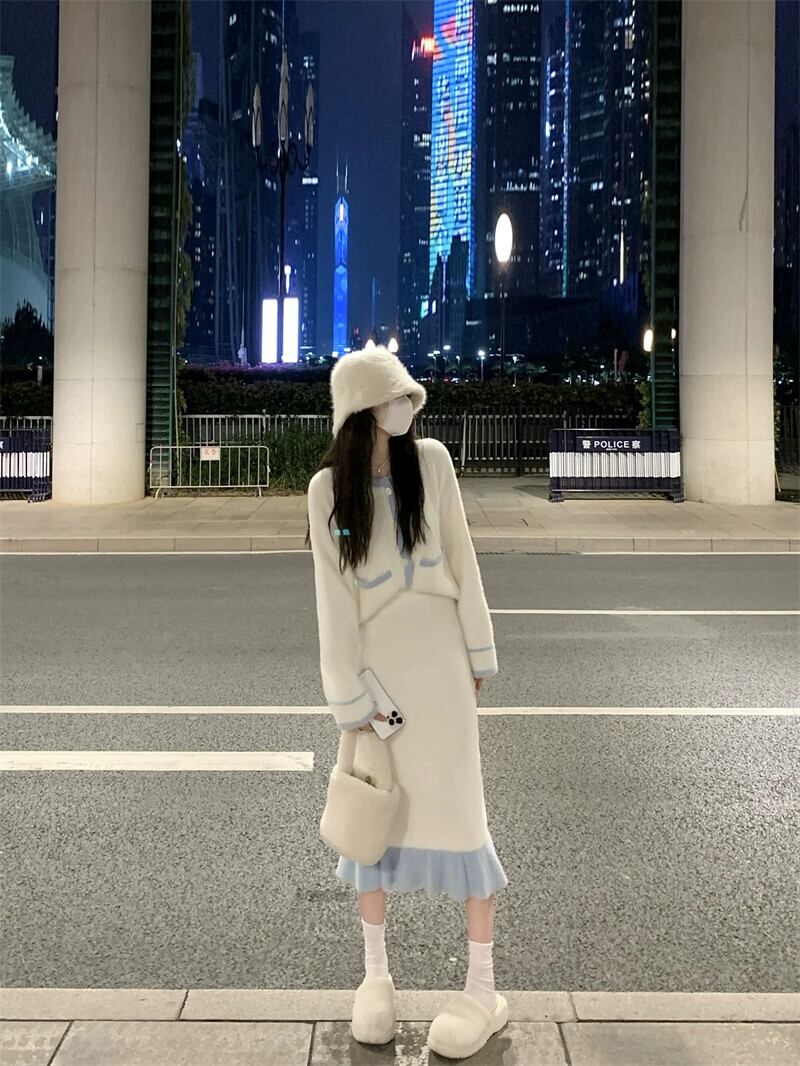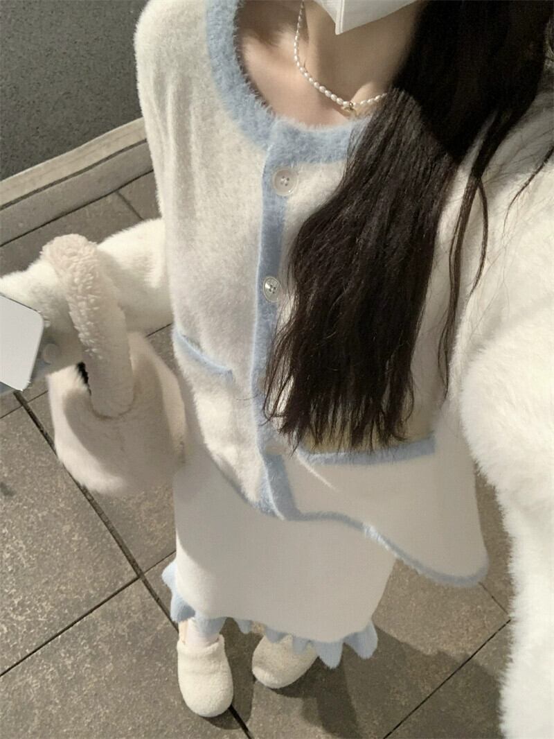 色:毛皮のようなカーディガン,毛皮のようなスカート