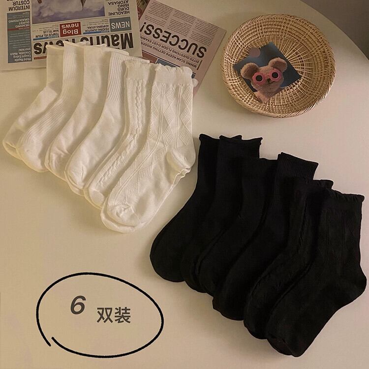 6 ペアの 2024 年秋冬新無地多用途ソックスミッドカーフソックスパイルソックスイントレンディなスポーツスタイルの黒の女性の靴下 ブラック オータム 秋物 ウィンター 冬物 タイツ ストッキング ソリッドカラー missk63773383038