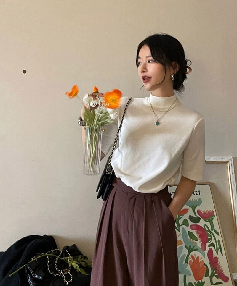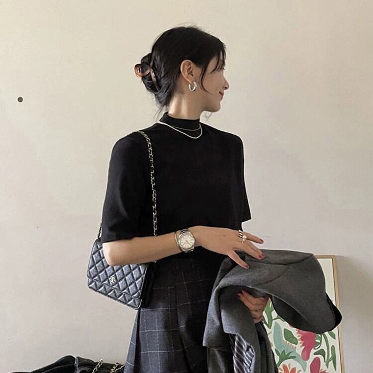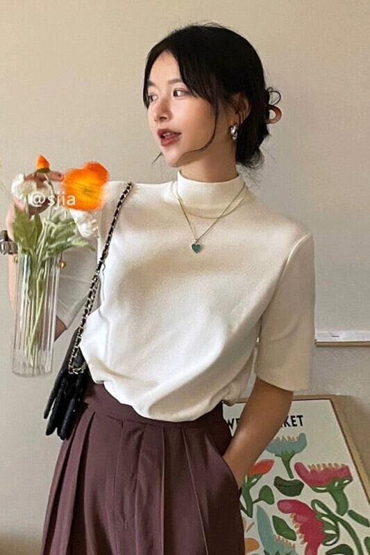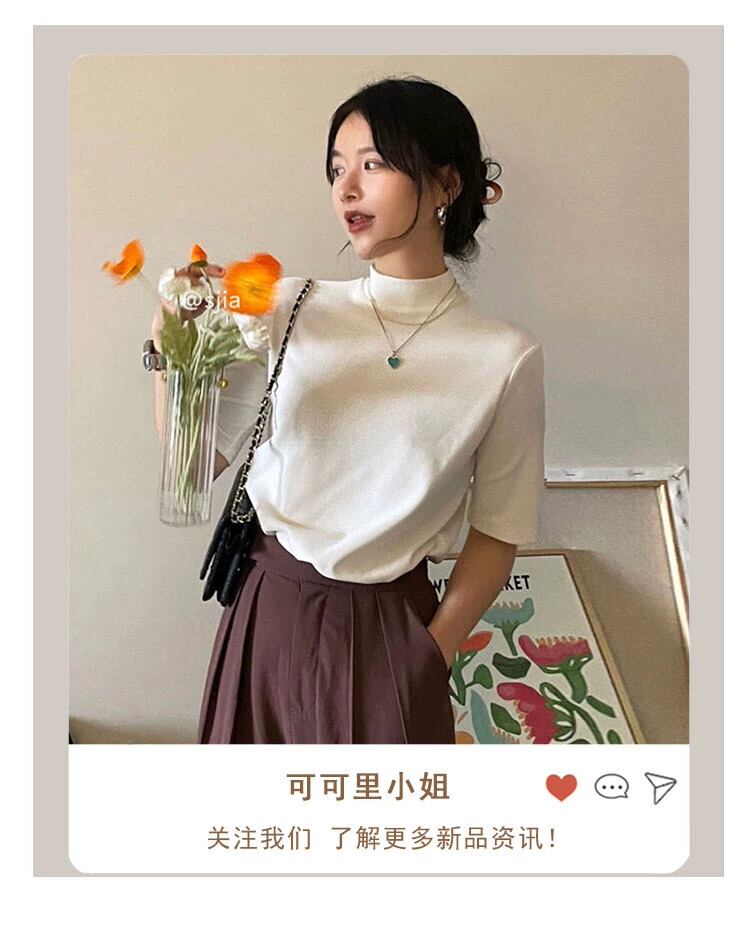 ハーフタートルネック半袖 Tシャツ秋バージョン 2024 新しい肥厚起毛白インナープルオーバーボトミングトップ女性 ホワイト オータム 秋物 missk54110805679