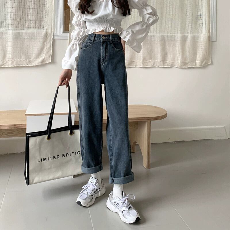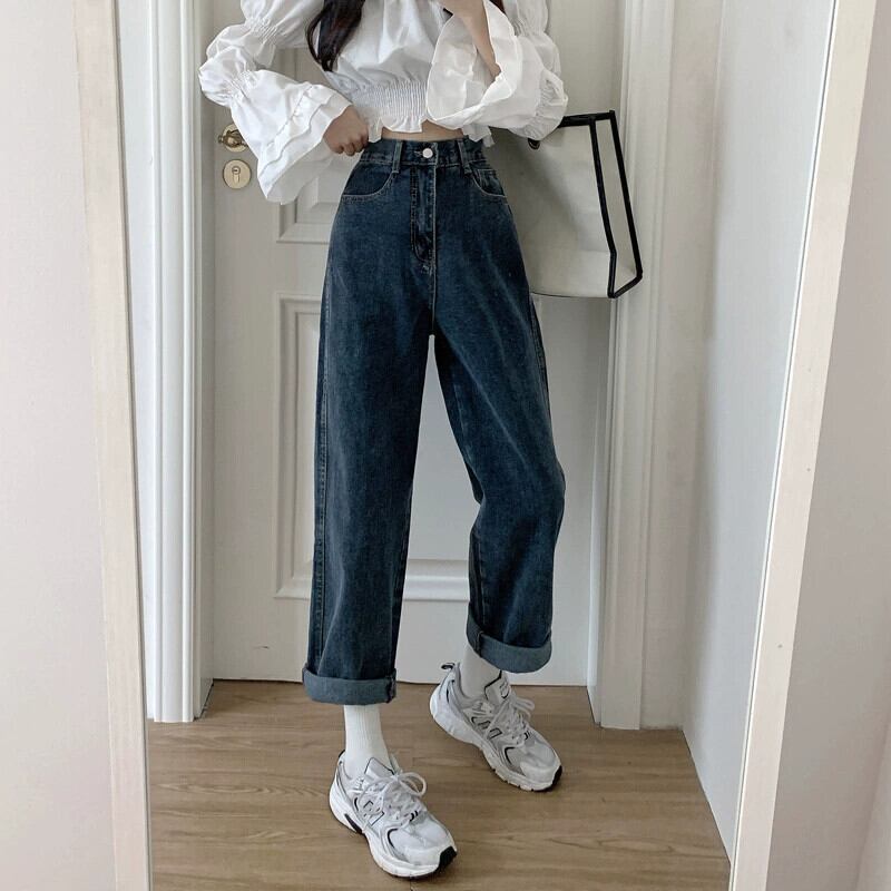 弾性ウエストデニムパンツ女性秋バージョン 2024 新しいスタイルの小さなハイウエストスリムルーズワイドレッグパンツトレンディな ハイウェスト エラスティック 伸縮 オータム 秋物 ワイドパンツ missk76887495028