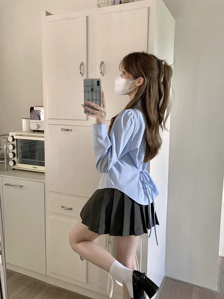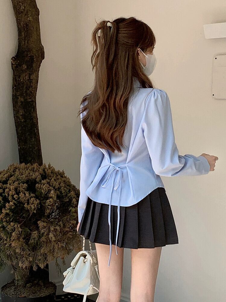 シックなシャツの女性の秋服 2024 新しい香港スタイルのデザインウエストネクタイ気質トップ長袖シャツ ロング オータム 秋物 missk65643428310