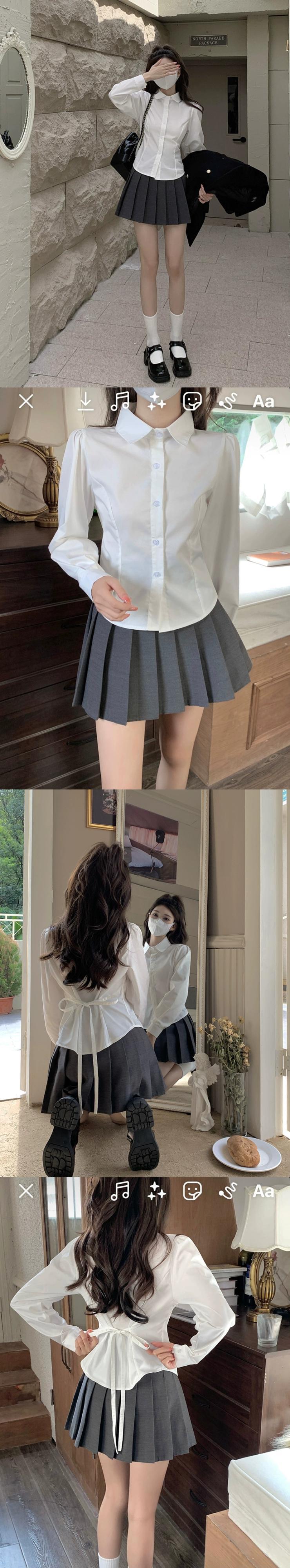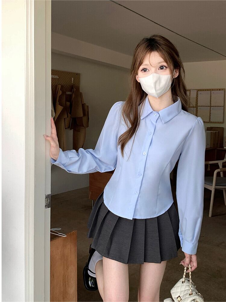 色:白のシャツ,短いスカート,青いシャツ