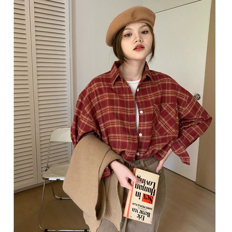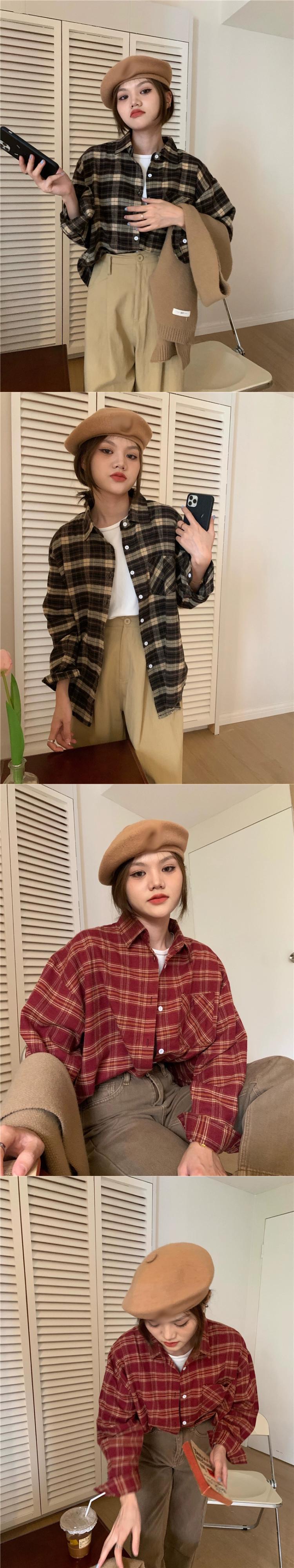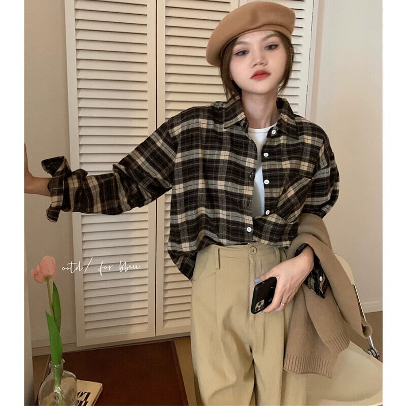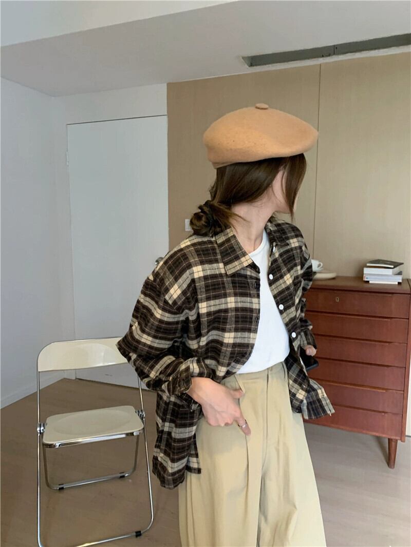 格子縞のシャツの女性の秋冬バージョン 2024 新しい起毛ラペル塩スタイルのアウターウェアデザインルーズ長袖トップ ロング オータム 秋物 ウィンター 冬物 missk39119386165