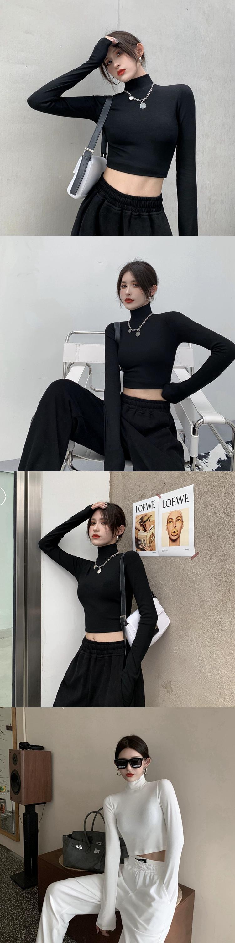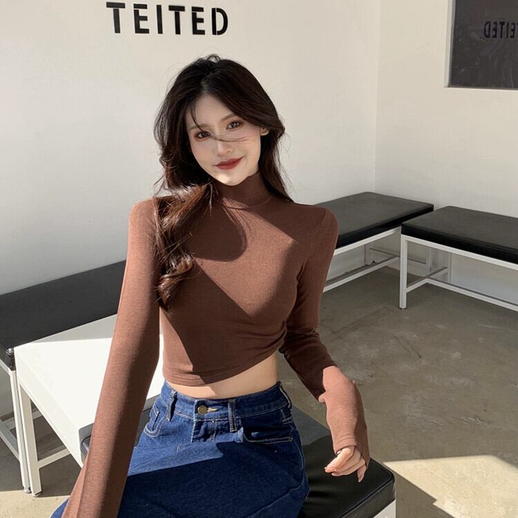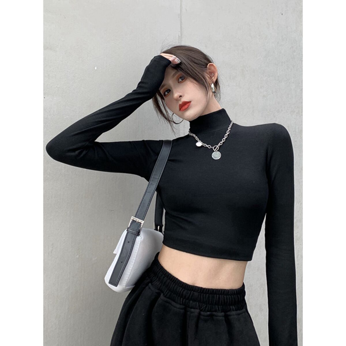 ホットスタイルハーフタートルネック長袖 Tシャツ女性秋バージョン 2024 新しいスリムスリムファッションショートボトシャツ ロング オータム 秋物 missk31893058025