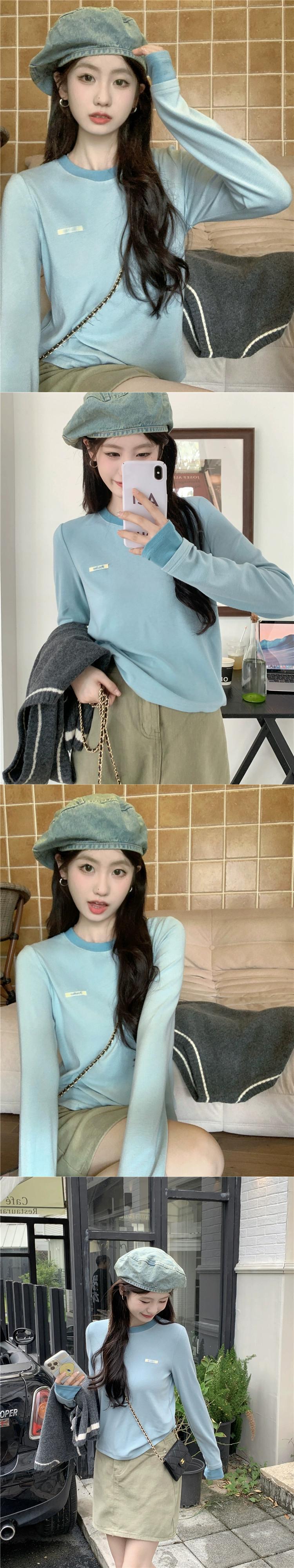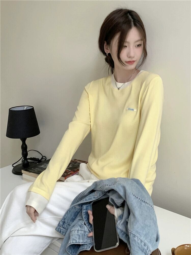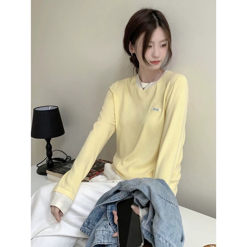優しい風フェイクツーピース長袖ボトリングシャツ女性 2024 年秋の新しいスリムフィットデザイン、インナー T シャツイン付き ロング オータム 秋物 Tシャツ missk42845739968