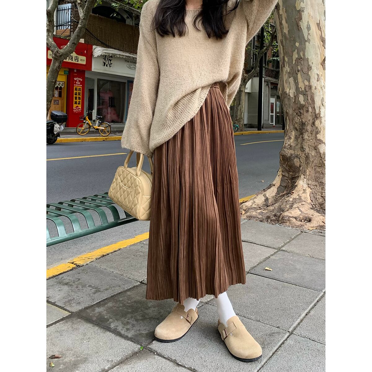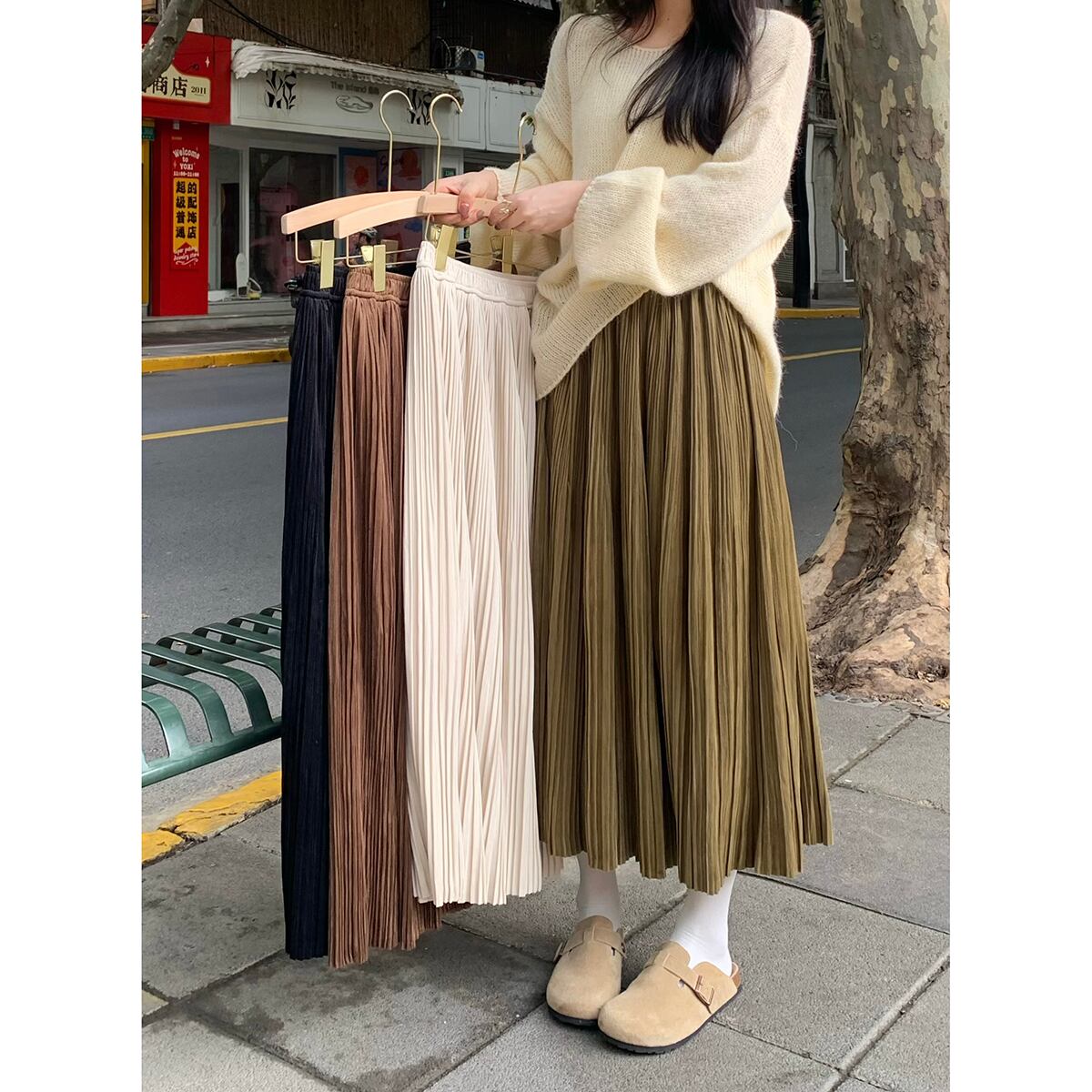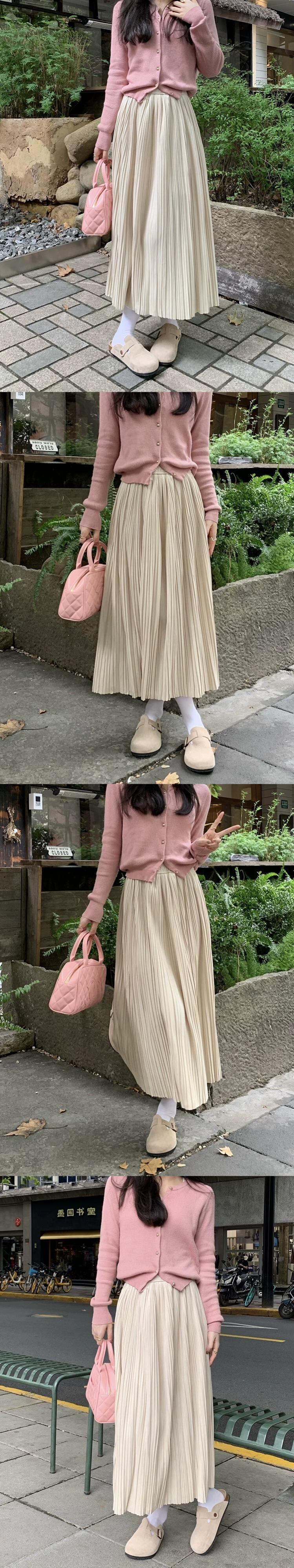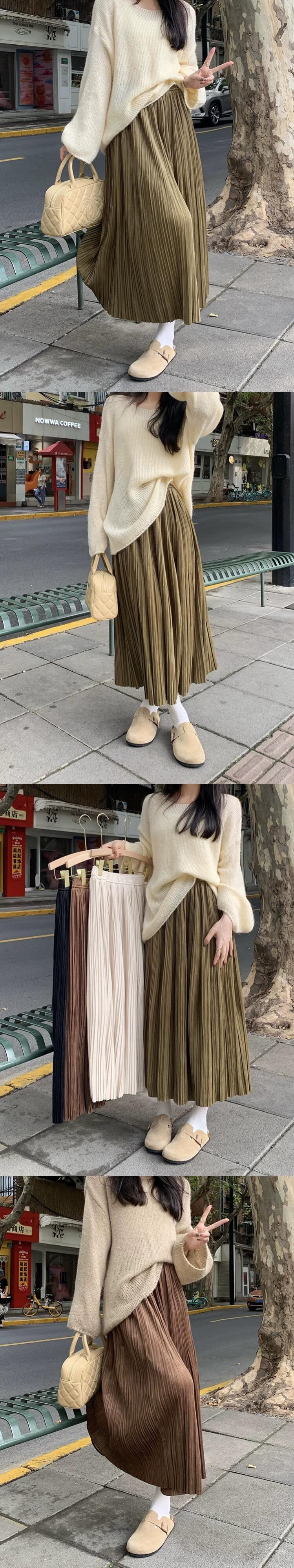 ベルベットプリーツスカート女性秋 2024 新しいスタイル優しいスタイルハイウエスト痩身ミッドレングス大きな裾 A ラインスカート ハイウェスト オータム 秋物 Aライン missk71106653332
