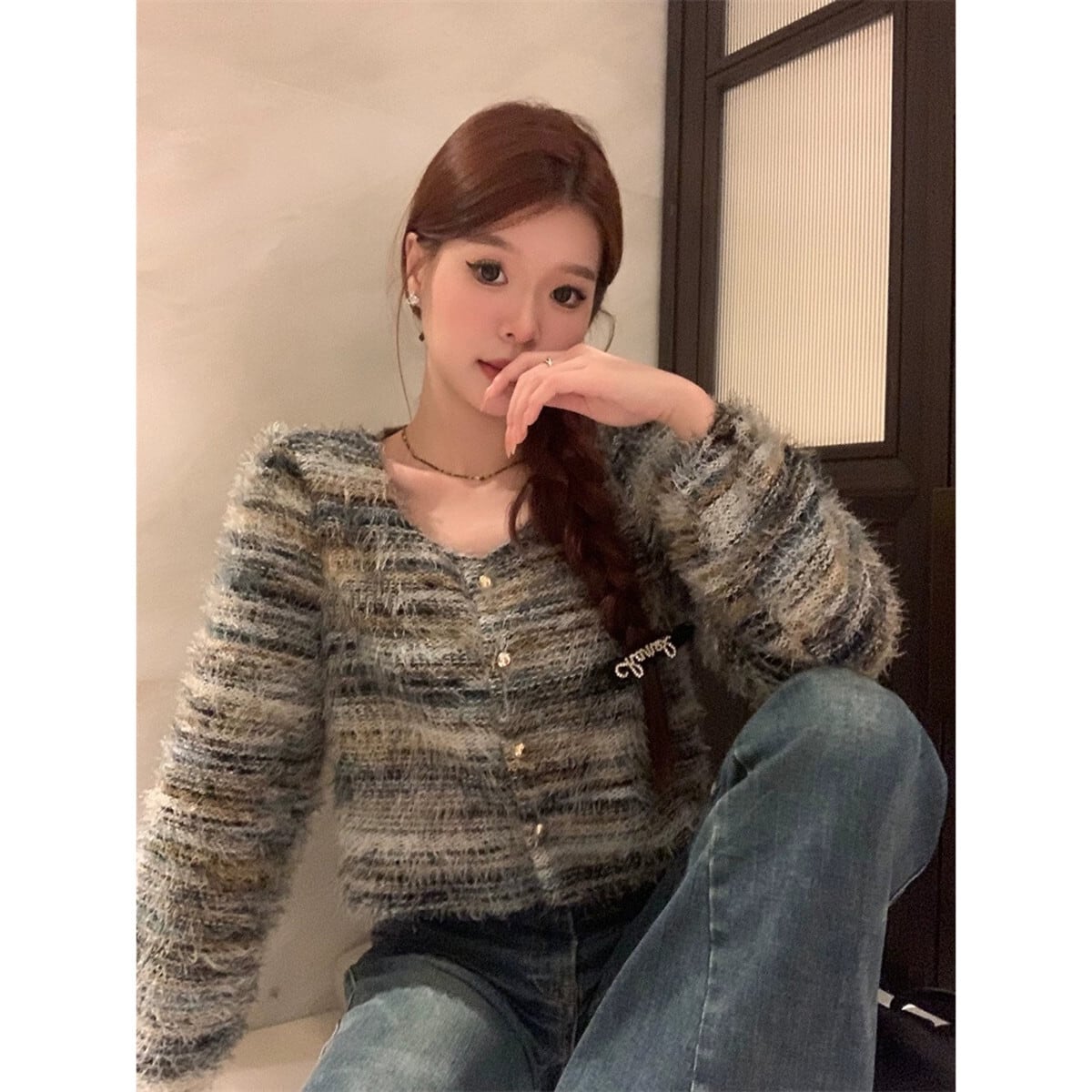 Xiaoxiangfeng ソフトとワックスのような長袖セーターの女性の秋 2024 新しいスタイルショートストライプデザイン気質セーターカーディガン ロング オータム 秋物 missk525372453