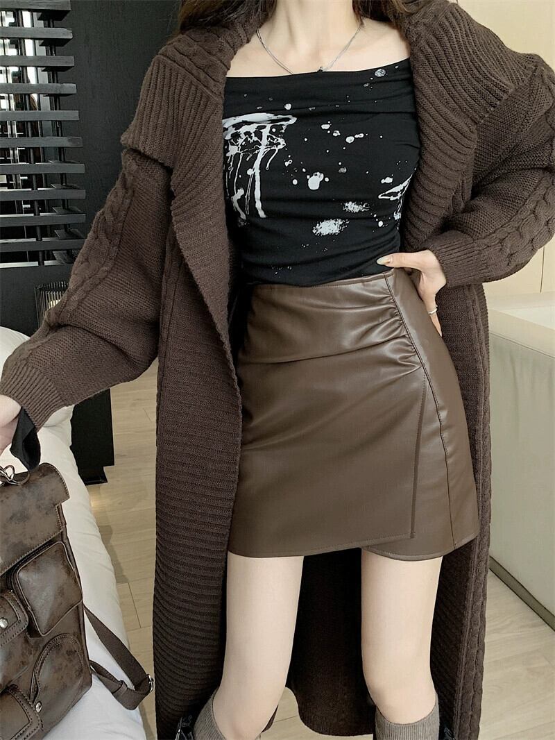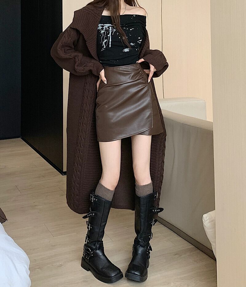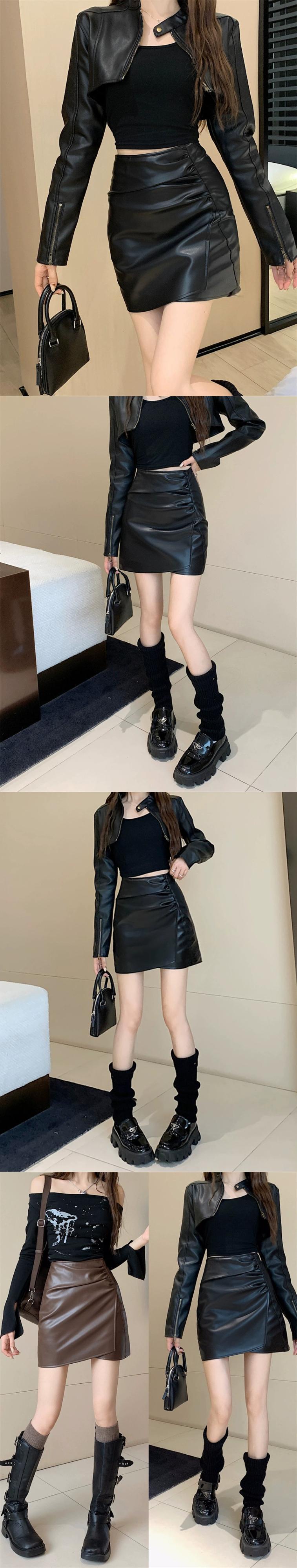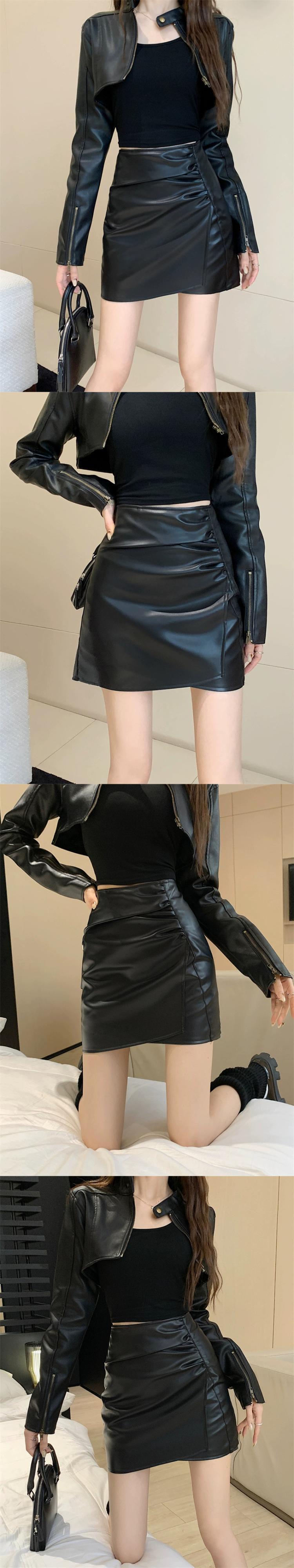 2024年初秋の新しいレトロな気質ハイウエストスカート女性ニッチデザインヒップハグレザーショートスカート オータム 秋物 missk55528886293