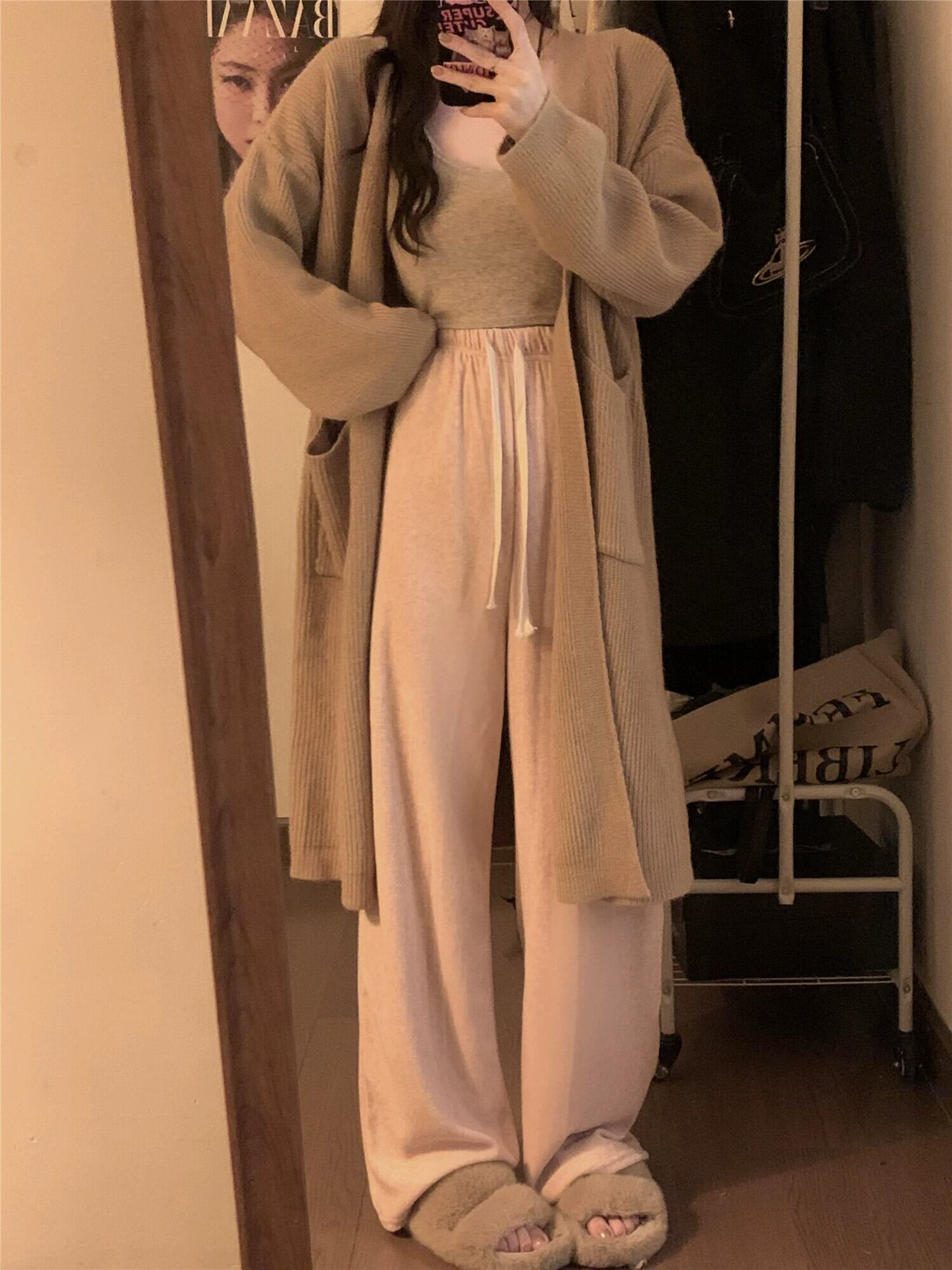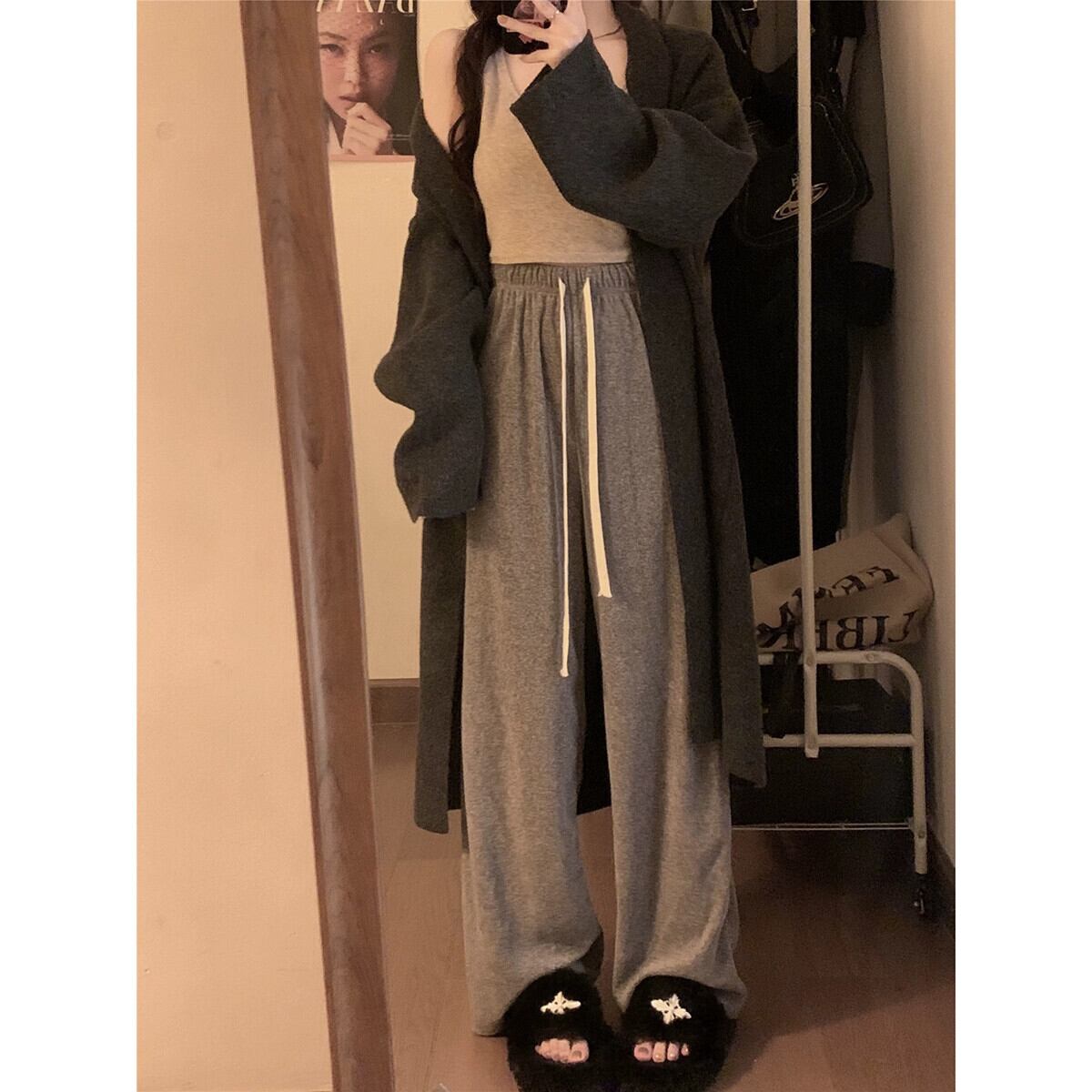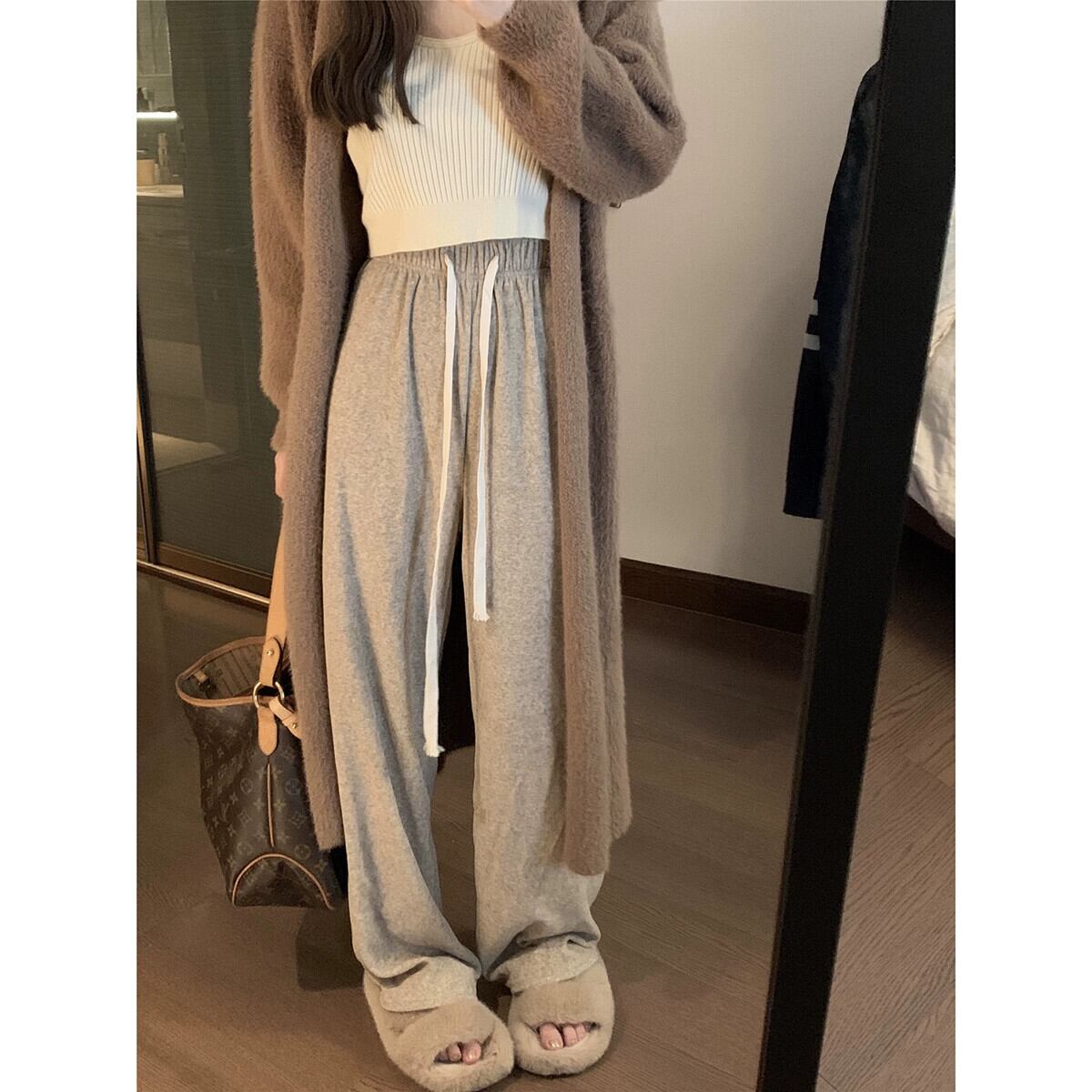 ベルベット肥厚カジュアルパンツ女性秋バージョン 2024 新しい弾性ウエストハイウエストスリムストレートワイドレッグパンツ ハイウェスト エラスティック 伸縮 オータム 秋物 ワイドパンツ missk10662234164