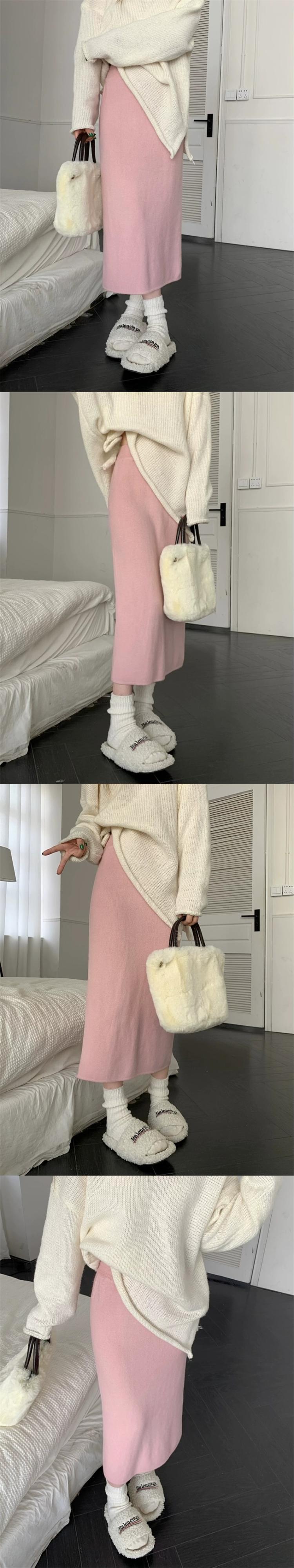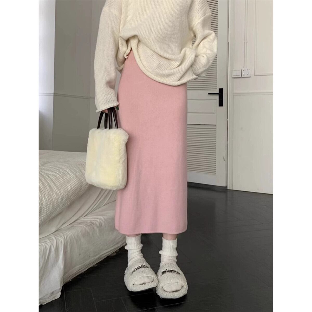 秋バージョン 2024 新しいハイウエストスリムファッション多用途スリットニットハーフレングススカート女性のスカートイン オータム 秋物 missk83486957283