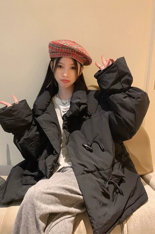 厚く暖かいホーンボタン長袖コットンジャケット女性の秋バージョン 2024 ゆるい多用途トップ ロング オータム 秋物 missk37212472798