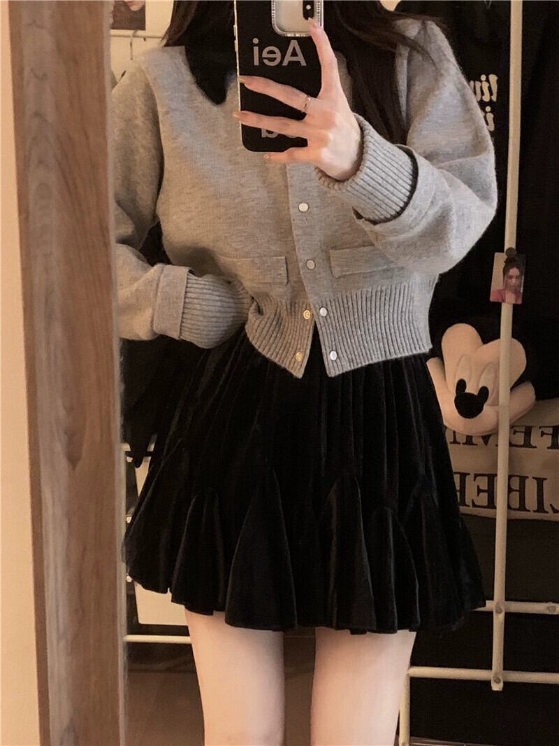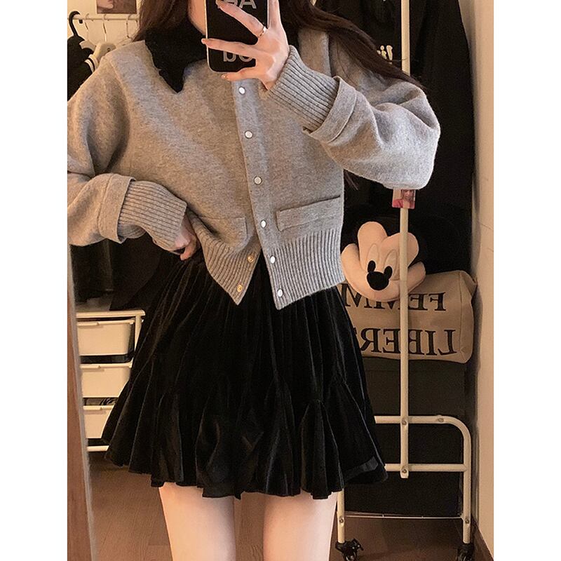 小さな香りのスタイルラペルコントラストカラー長袖セーター2024年秋の新デザインルーズショートファッションニットトップ ロング オータム 秋物 missk46397274053