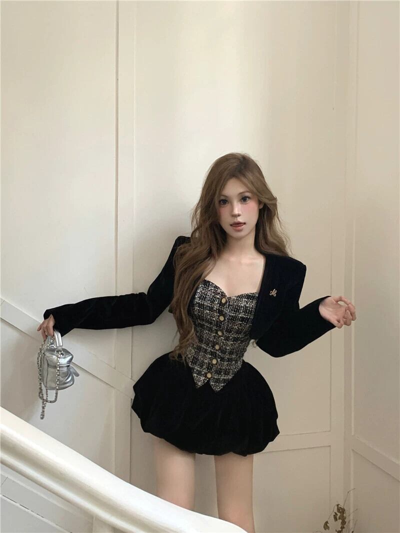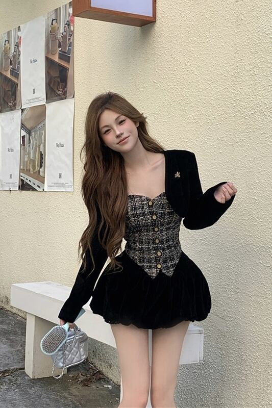 Xiaoxiangfeng デザインサスペンダーショート長袖ジャケットベルベットスカート女性秋 2024 新しいファッションスーツ ロング オータム 秋物 missk10909009028