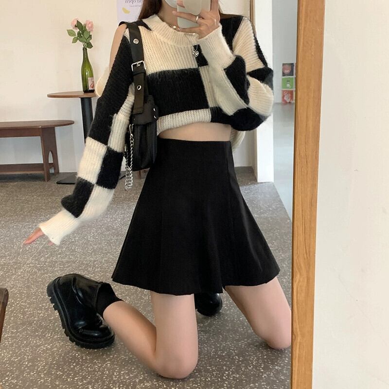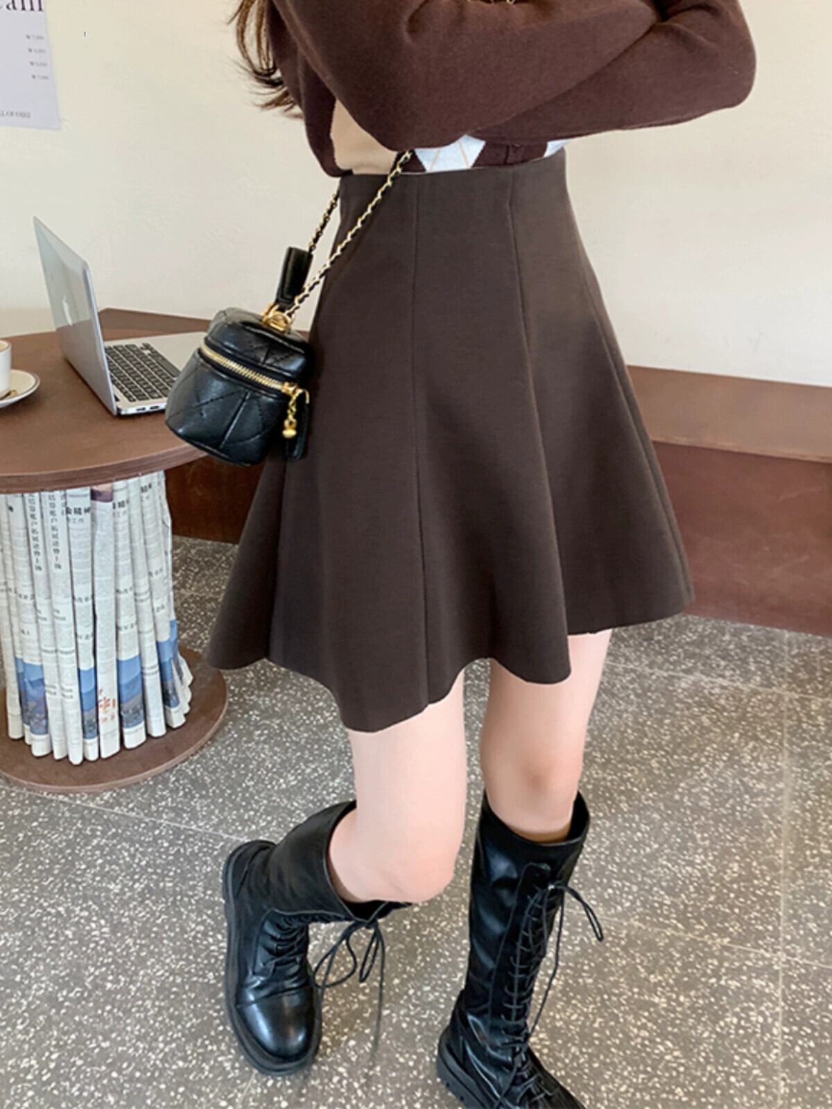 レトロな A ラインスカートの女性 2024 秋の新しいハイウエストスリムシックなウールスカートと大きなスイングスカート オータム 秋物 Aライン missk18904593321