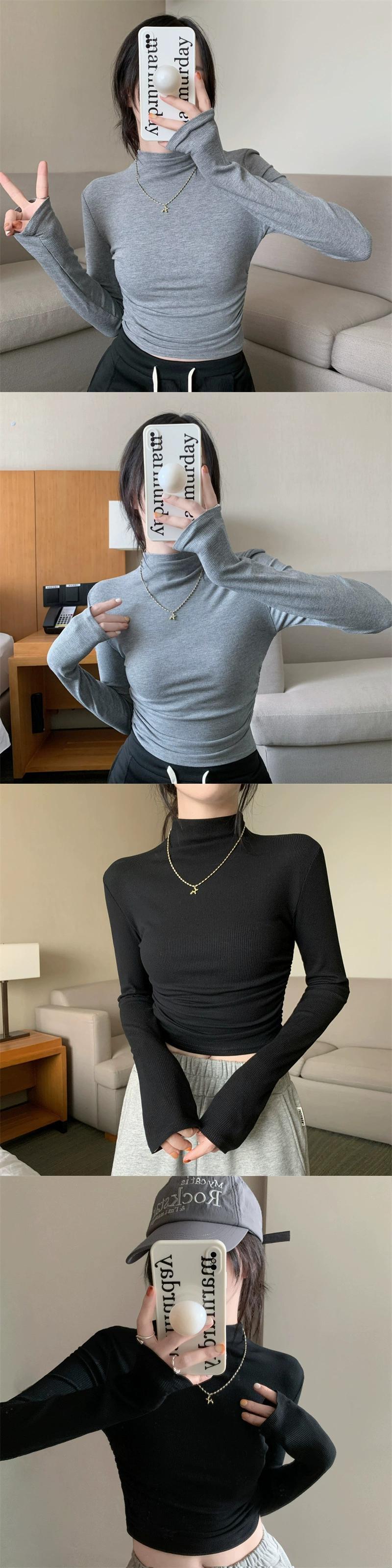 秋冬バージョン 2024 新しいスリムフィットハーフハイカラープリーツショートシンプルなスタイル長袖 Tシャツトップス女性イン ロング オータム 秋物 ウィンター 冬物 missk43658658886
