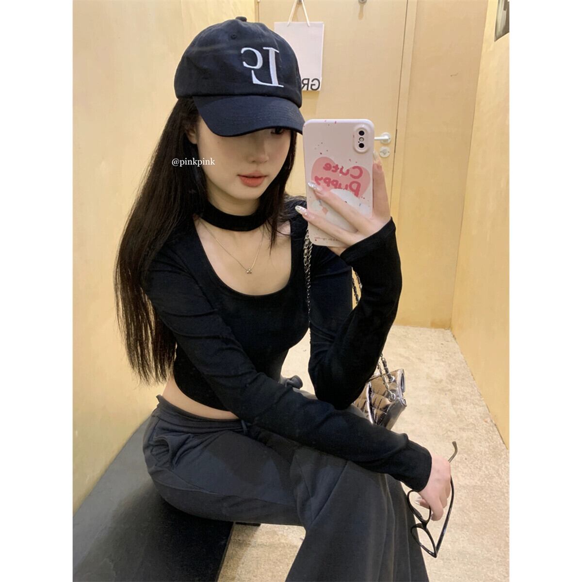 中空ホルターネック長袖 Tシャツ女性秋バージョン 2024 新しいショートスタイル痩身外層ベースシャツ ロング オータム 秋物 missk78166388077