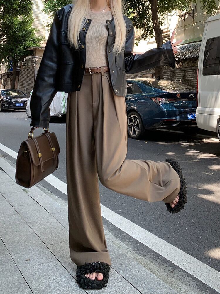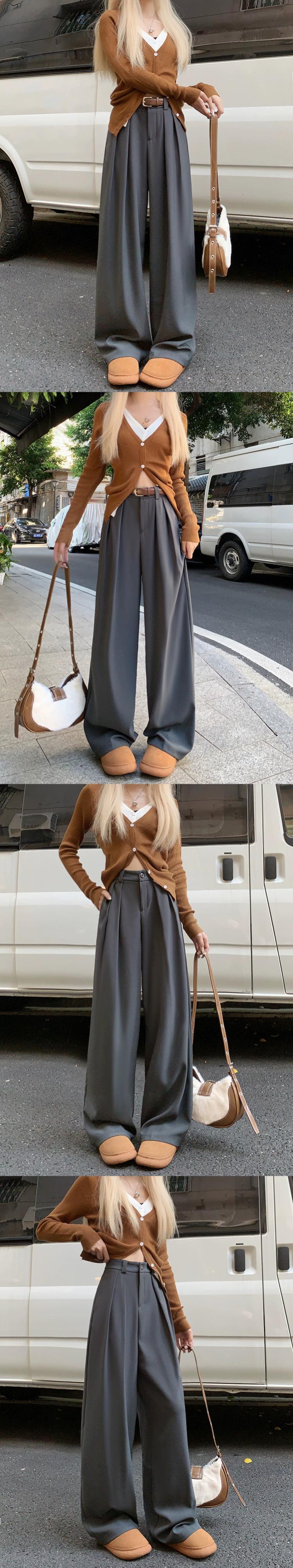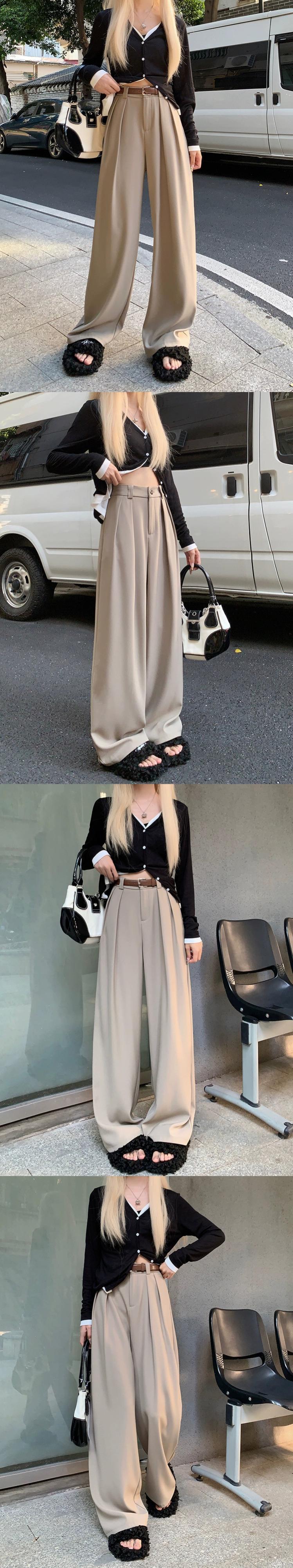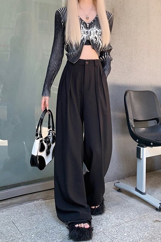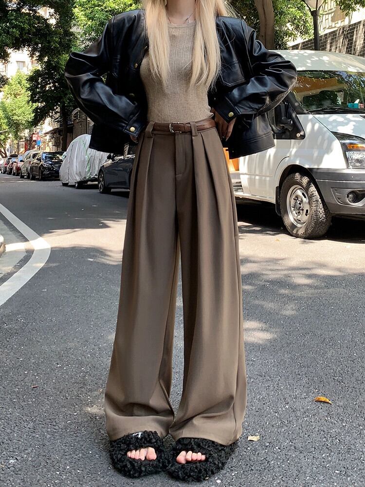 ドレープスーツパンツの女性の秋バージョン 2024 新しいハイウエストスリムブラウンカジュアルワイドレッグフロアレングスパンツ オータム 秋物 missk44746416441