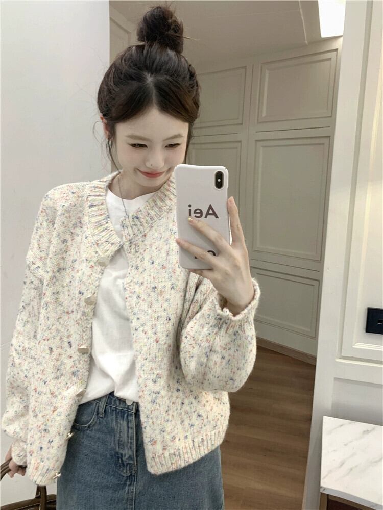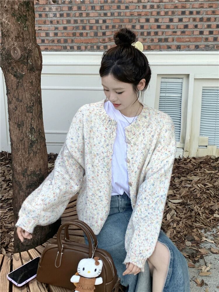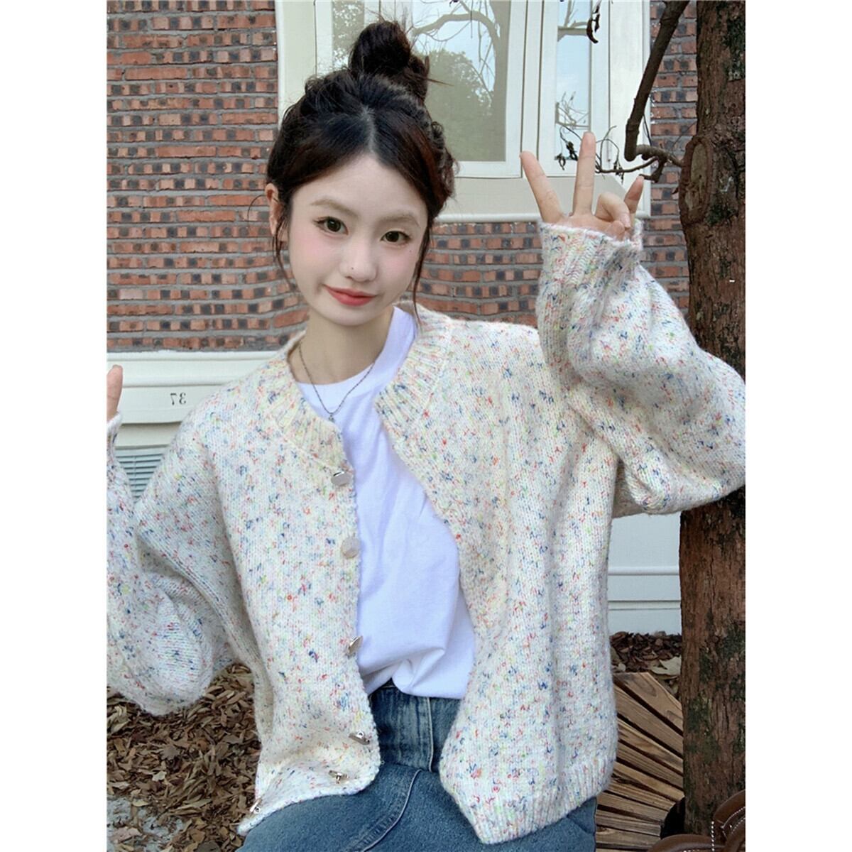 怠惰なスタイルのカラフルなドット長袖セーターの女性の秋 2024 新しいスタイルルーズで汎用性の高いデザインニットカーディガントレンド ロング オータム 秋物 missk21613299540