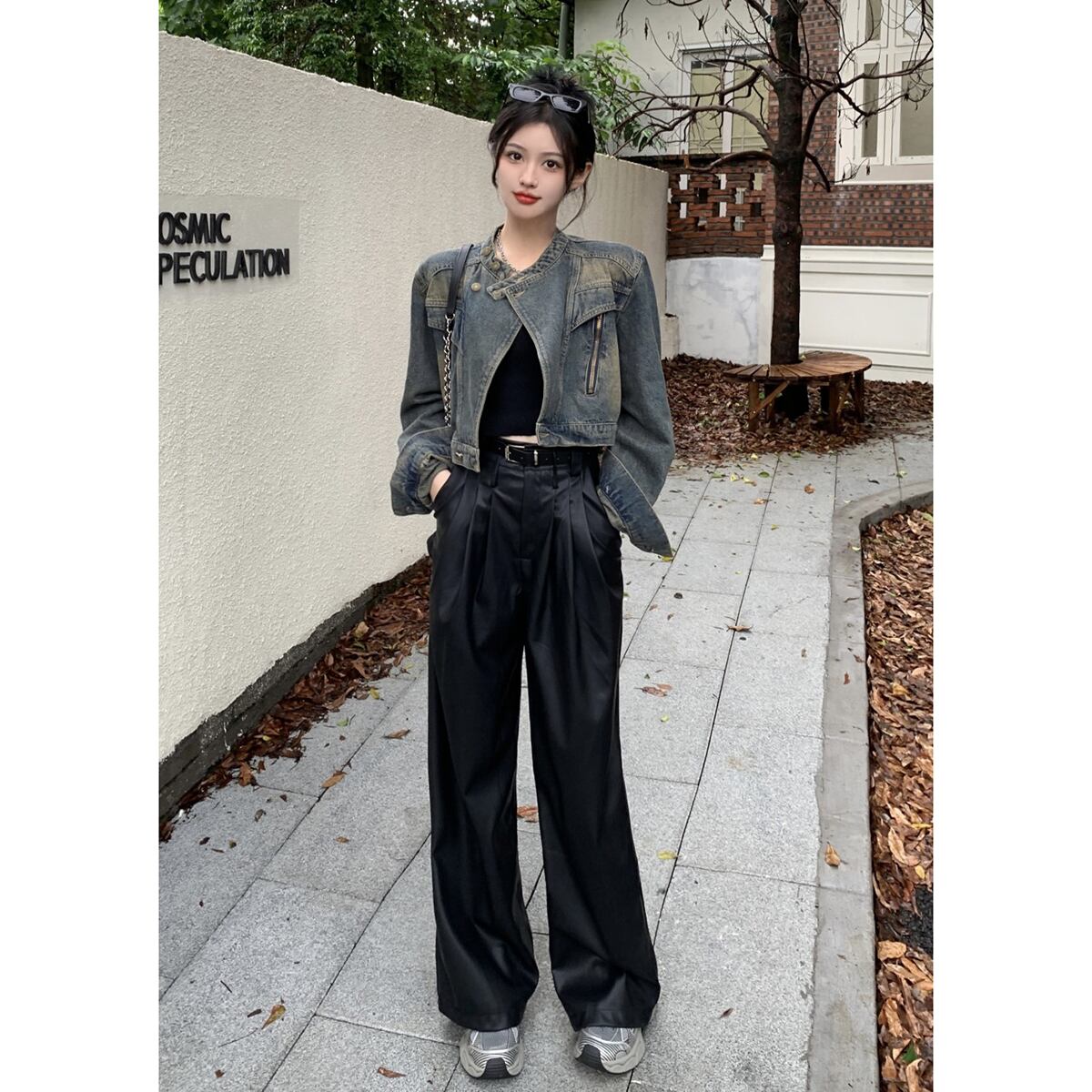 色:ジージャン,黒のレザーパンツ+ベルト
