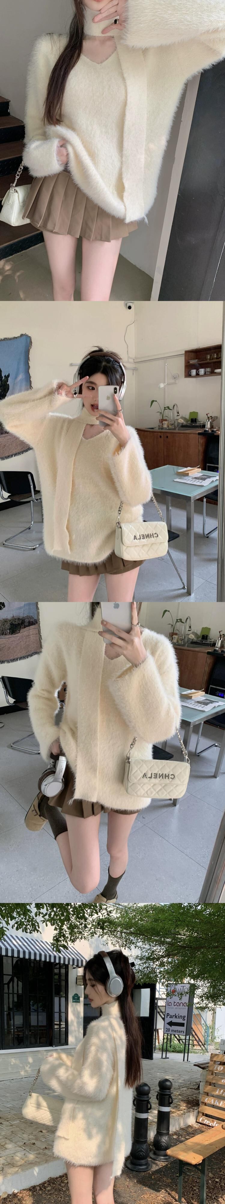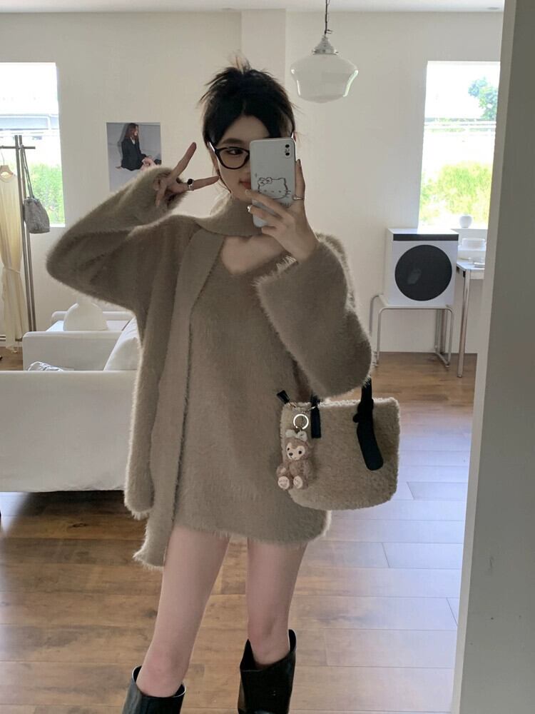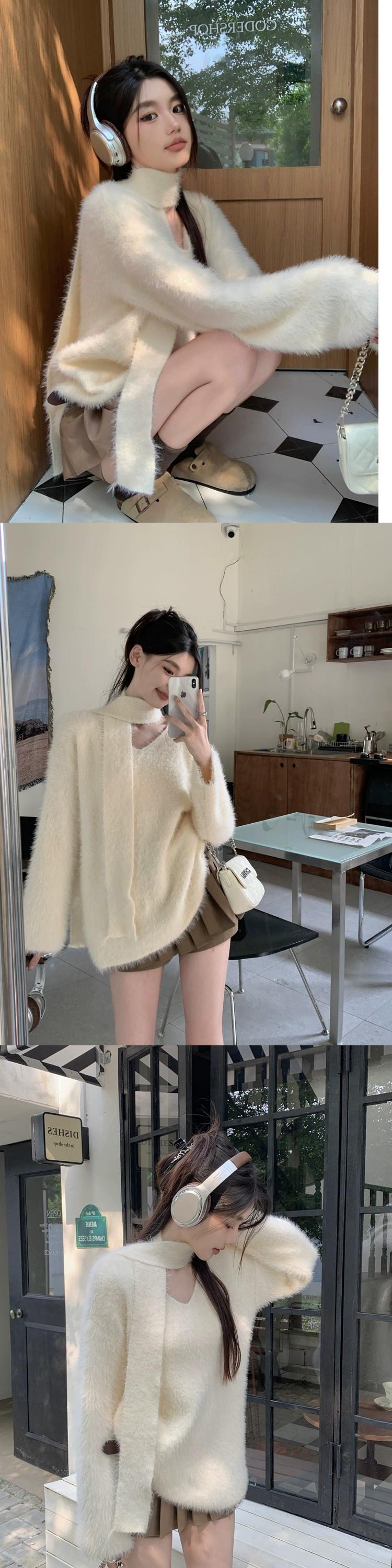 模造ミンクセーター女性秋冬 2024 新しいソフトで優しいスタイル V ネックルーズリボンデザイン長袖トップ ロング オータム 秋物 ウィンター 冬物 Vネック missk49022956186