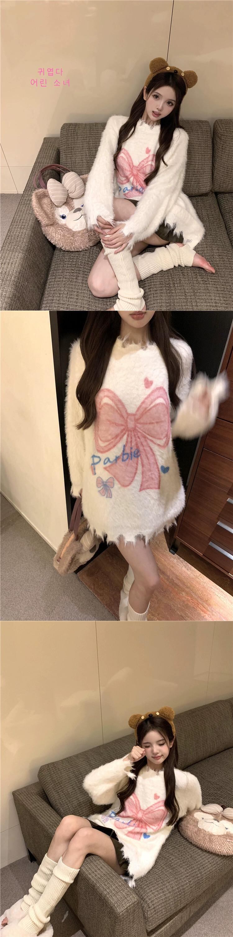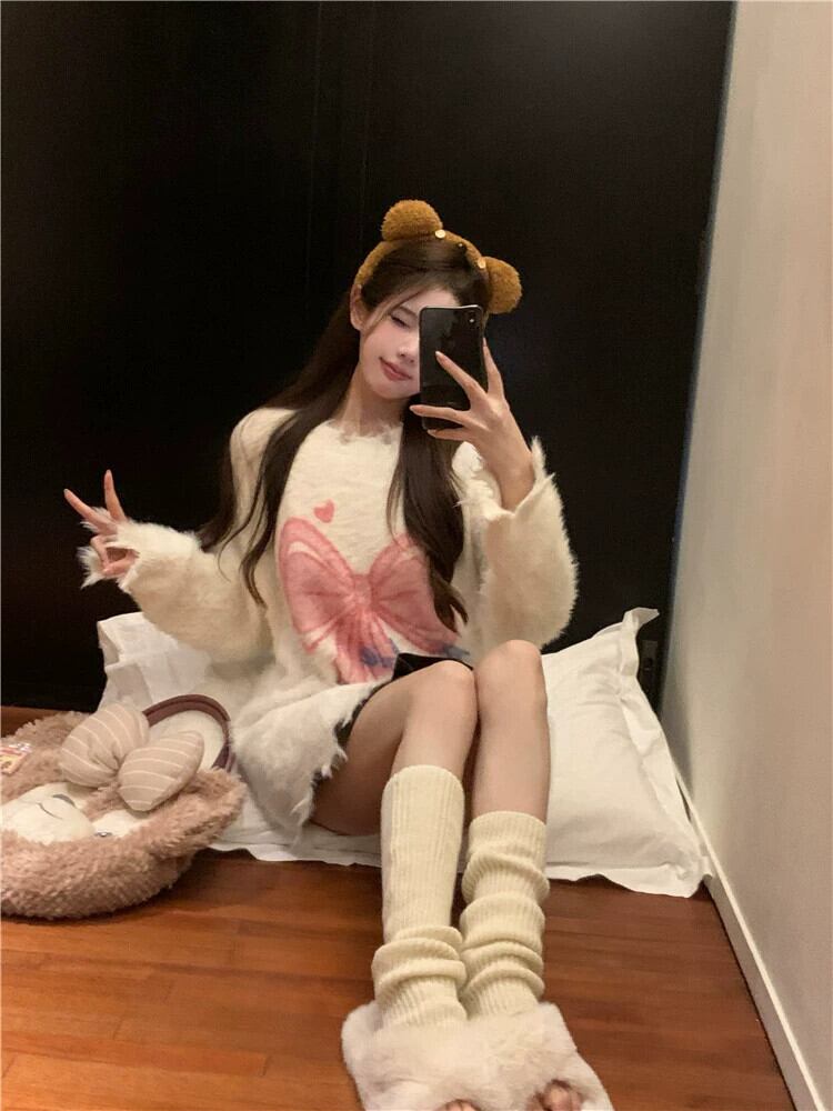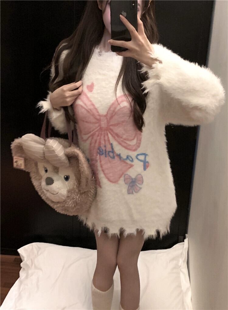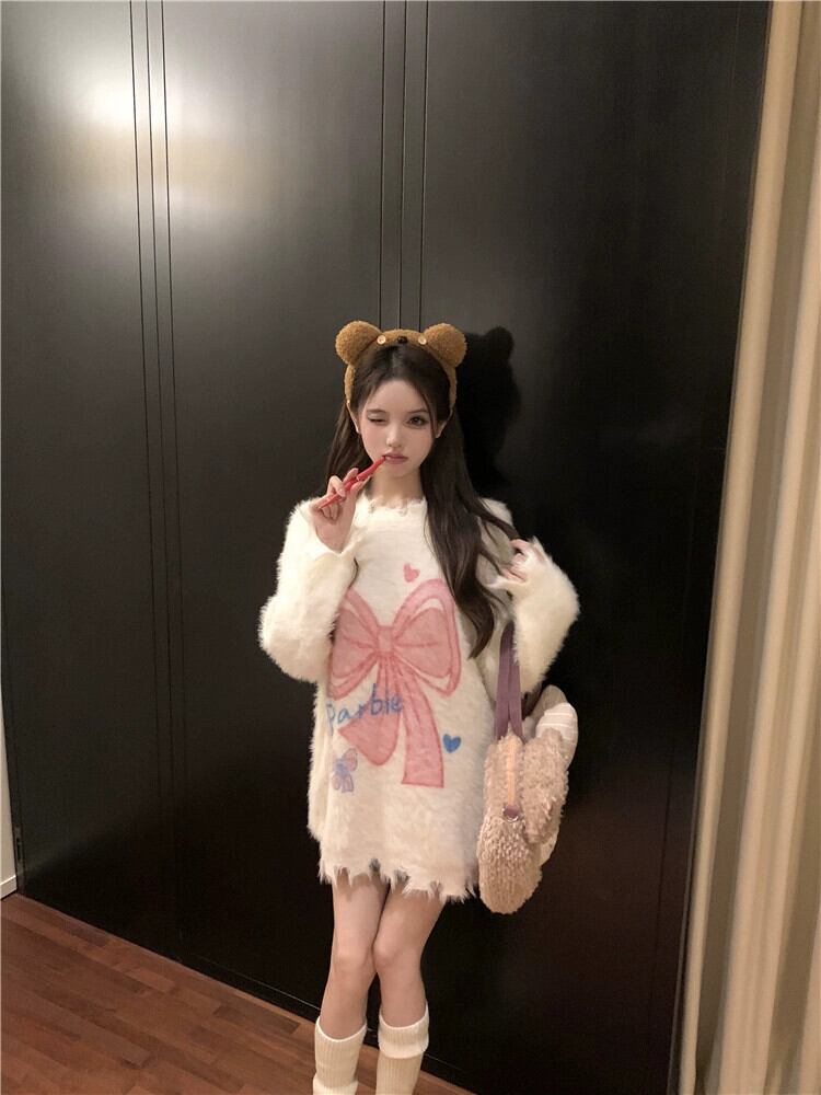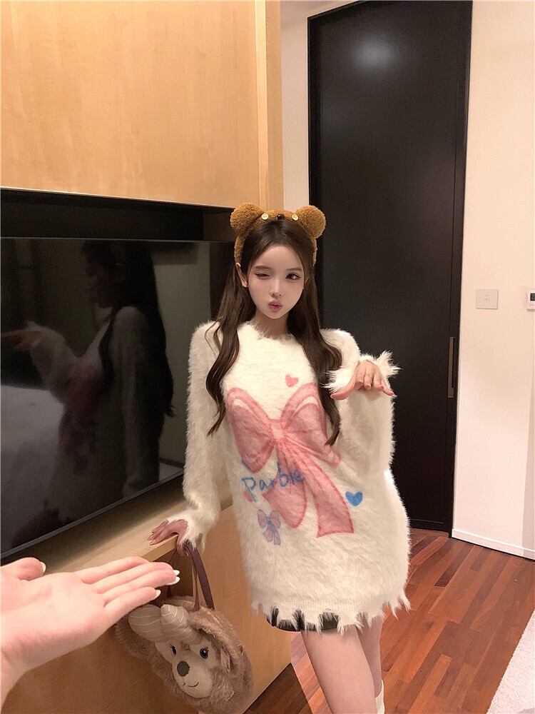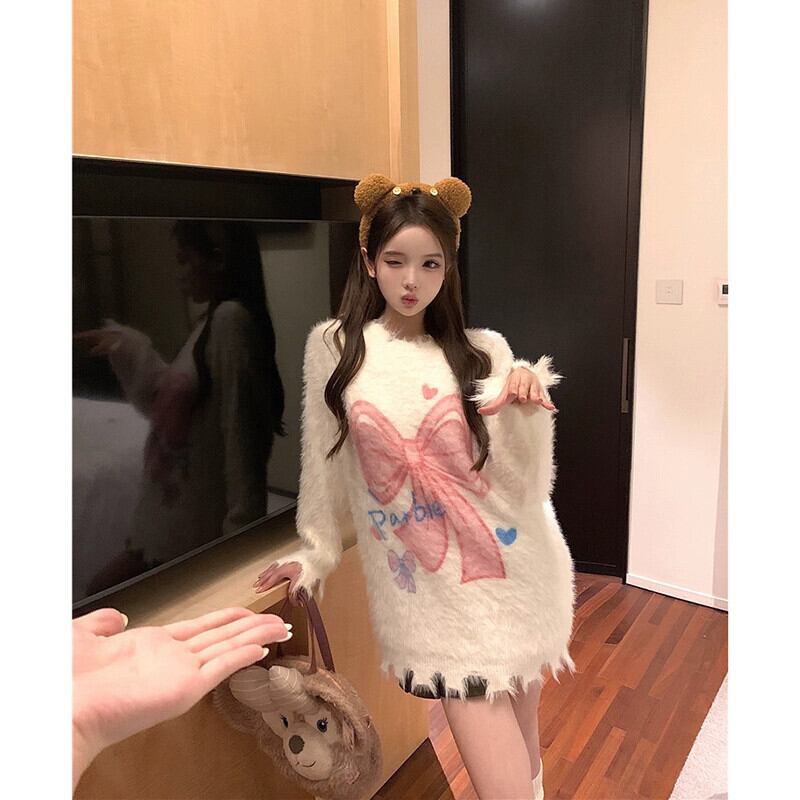 モヘアセーター女性秋と冬 2024 新しいスタイルのソフトで怠惰なデザイン穴アウターウェアルーズ長袖トップ ロング オータム 秋物 ウィンター 冬物 missk73734566316