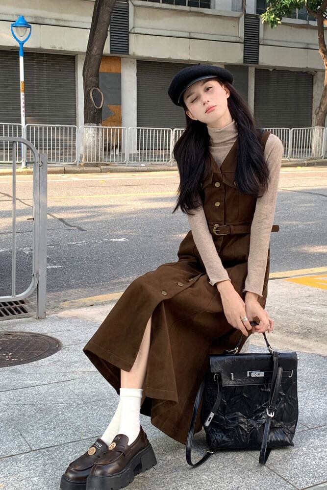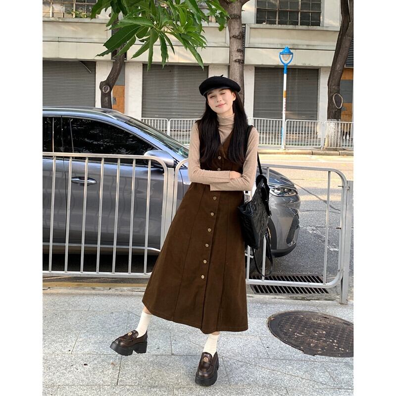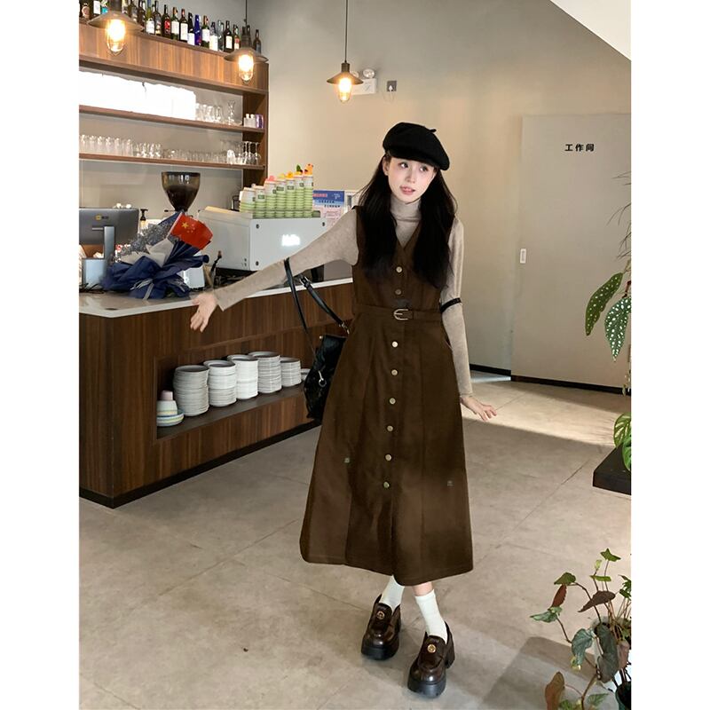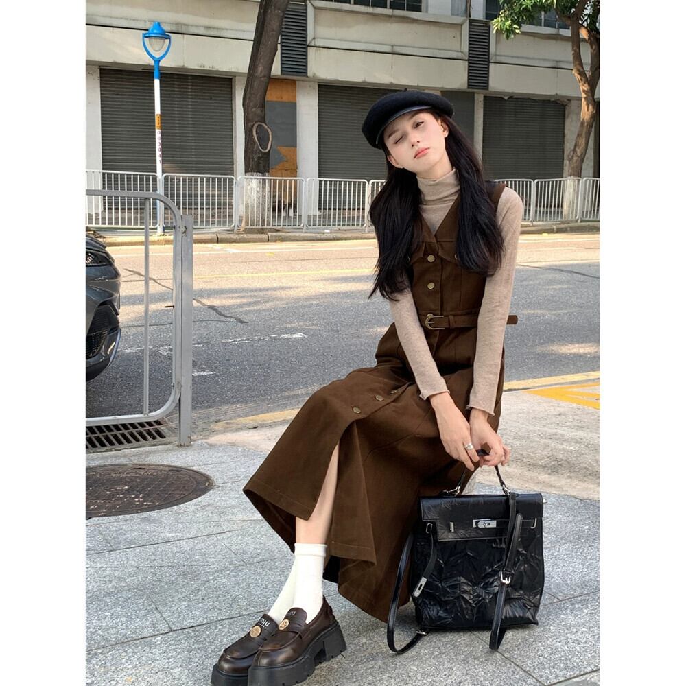 メイラード気質 V ネックドレス V ネックレディース秋 2024 新しいシングルブレストウエストスリムベストドレスシック オータム 秋物 Vネック missk66935537775