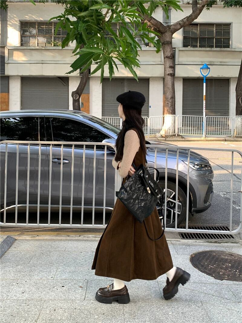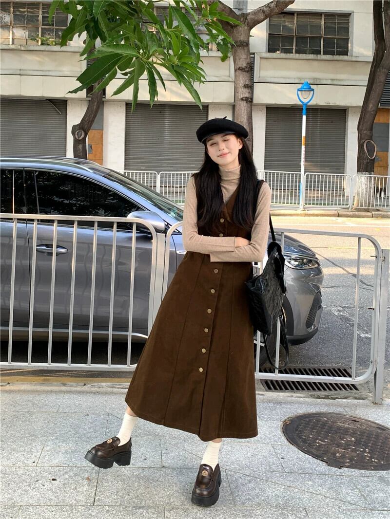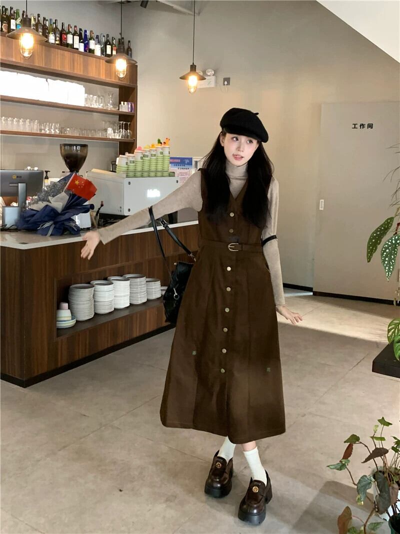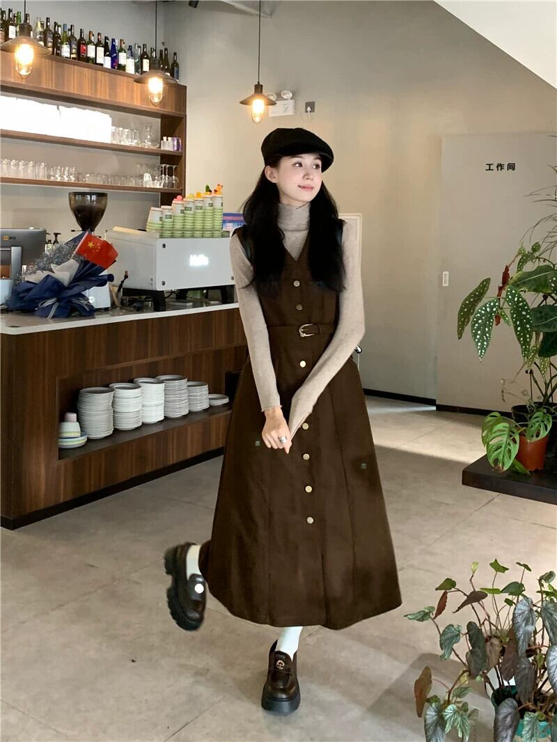 メイラード気質 V ネックドレス V ネックレディース秋 2024 新しいシングルブレストウエストスリムベストドレスシック オータム 秋物 Vネック missk66935537775