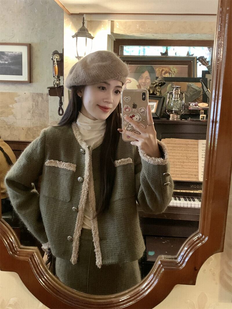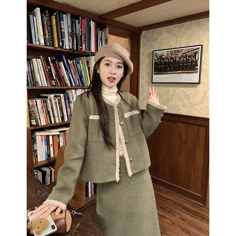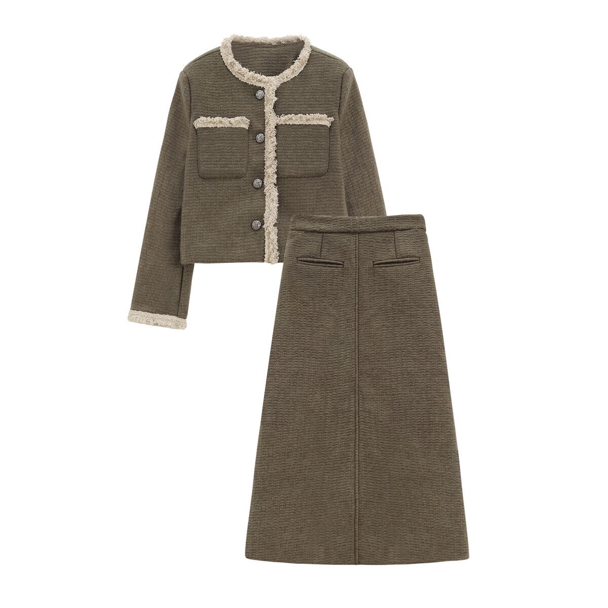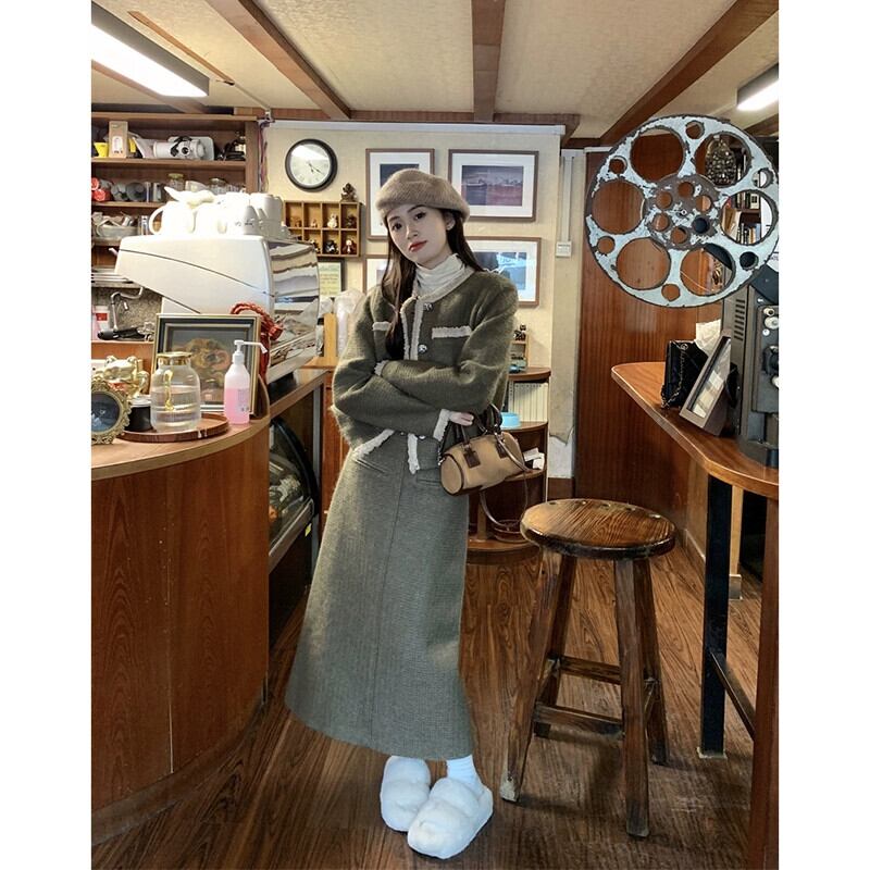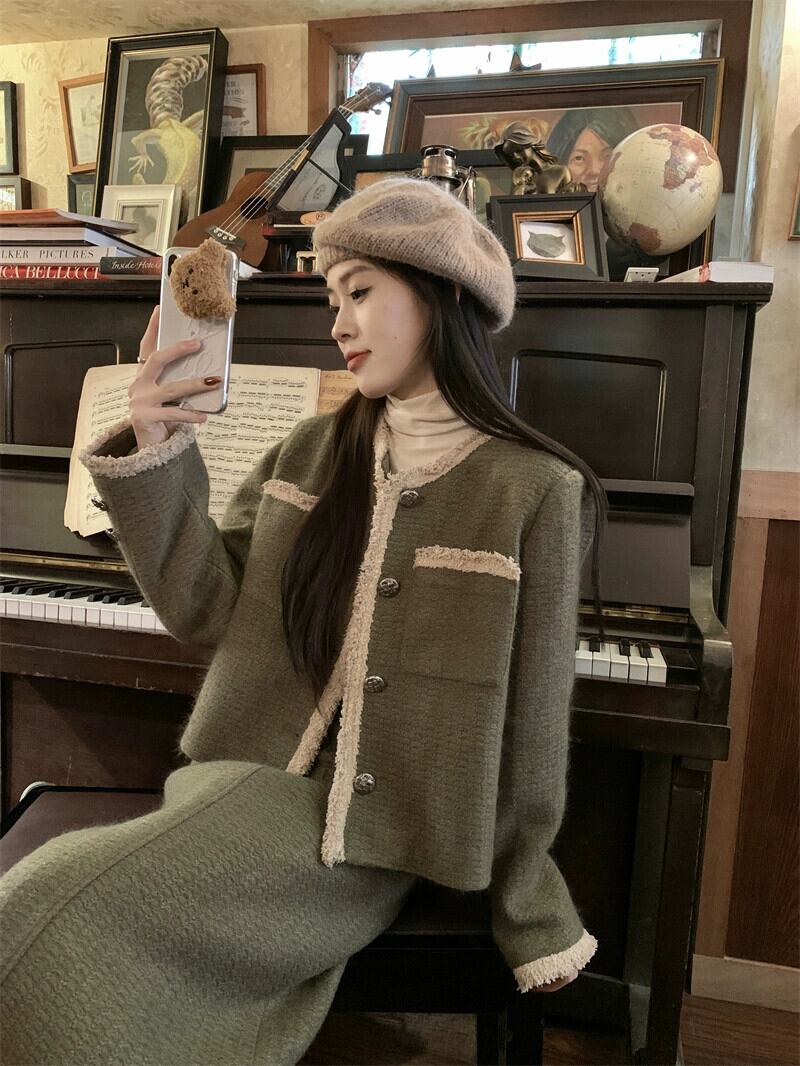 Xiaoxiangfeng 織コントラストカラー長袖ウールジャケットミドル丈スカート女性の秋 2024 新しいファッションスーツ ロング オータム 秋物 missk91656576553