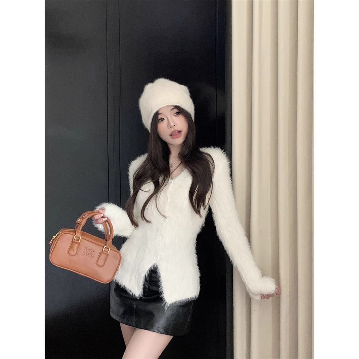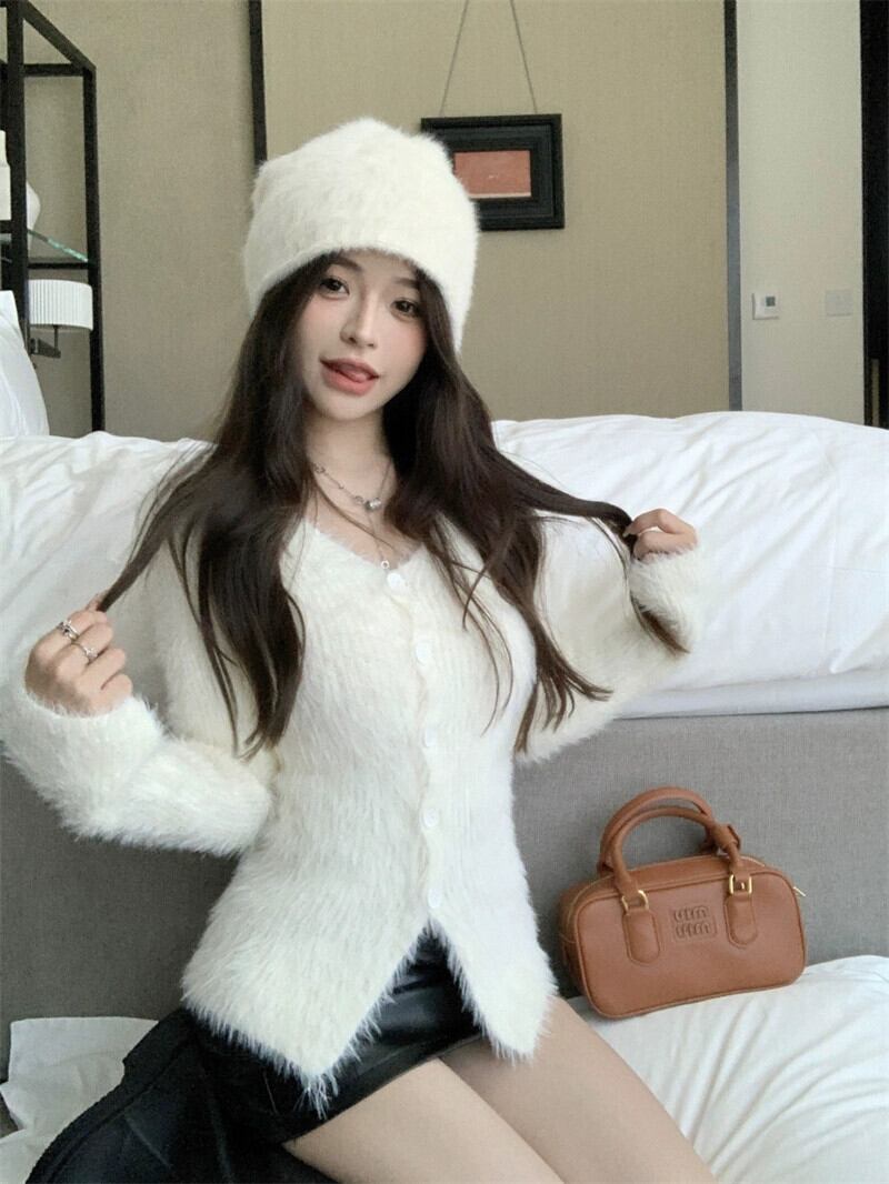 優しいフェイクミンクベルスリーブセーター女性秋バージョン 2024 新しいソフトワックスショートスリム長袖カーディガン ロング オータム 秋物 ファー missk1535213675