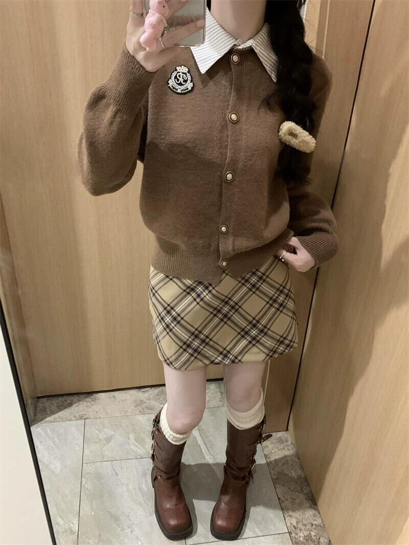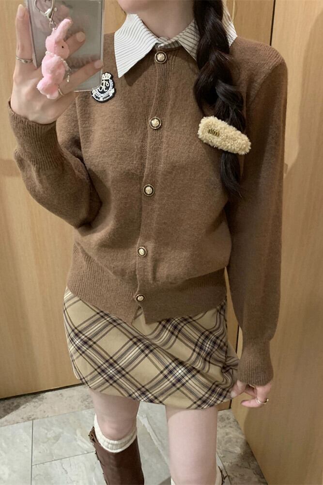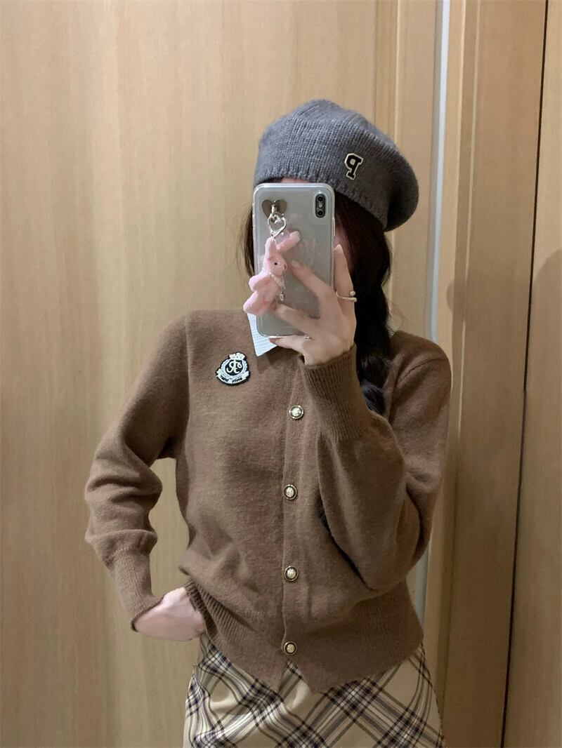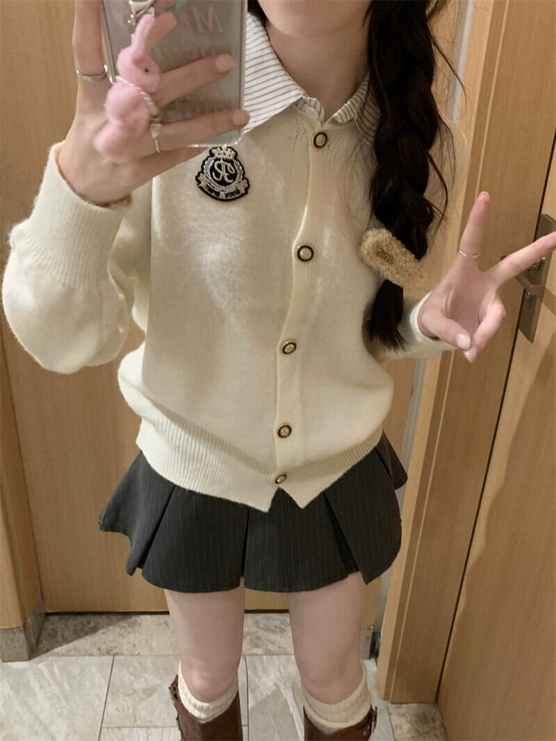 スタイルポロ襟パッチワークニットセーター女性秋 2024 新デザインソフトとワックスのようなルーズ長袖カーディガン ロング オータム 秋物 missk9363478523