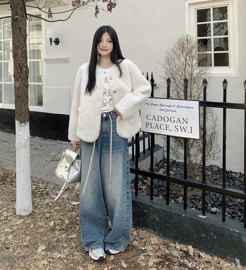 猫猫コートレディース 2024 秋冬新作フランス高級シングルブレストラウンドネックゆったりとした気質長袖トップ ロング オータム 秋物 ウィンター 冬物 Oネック missk82291396614