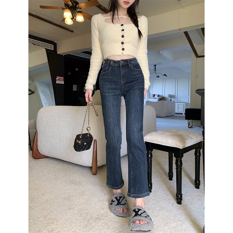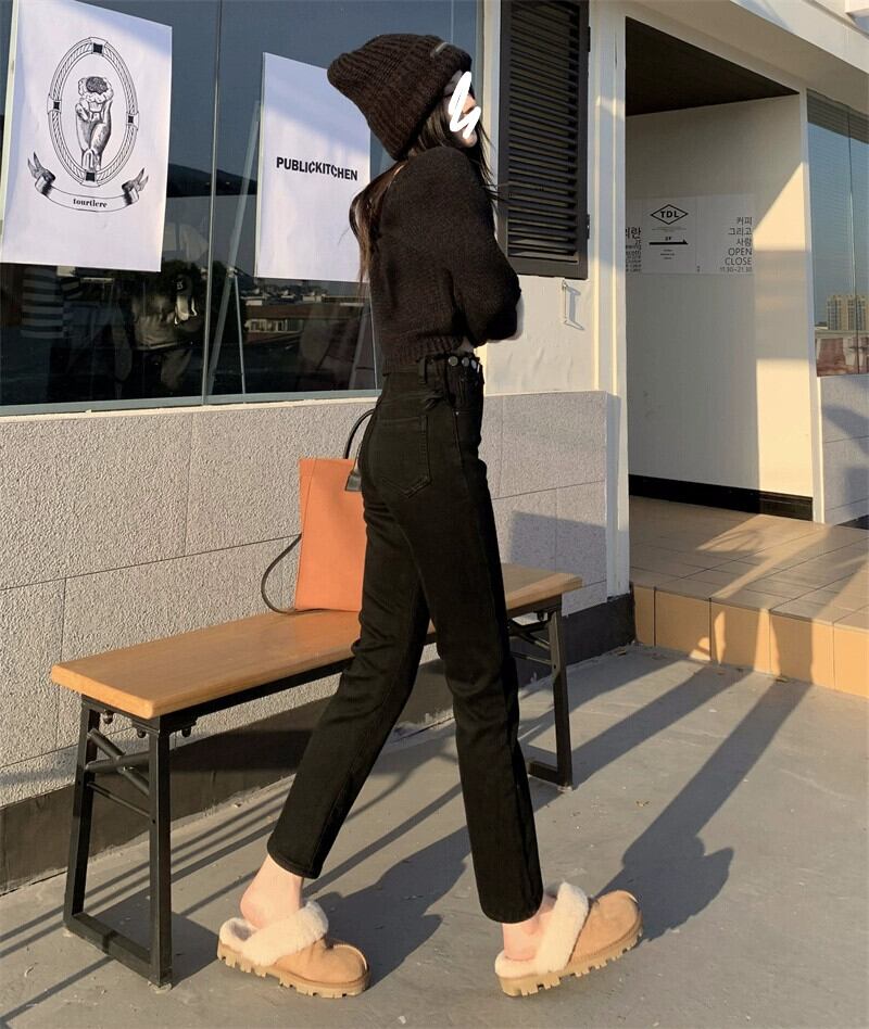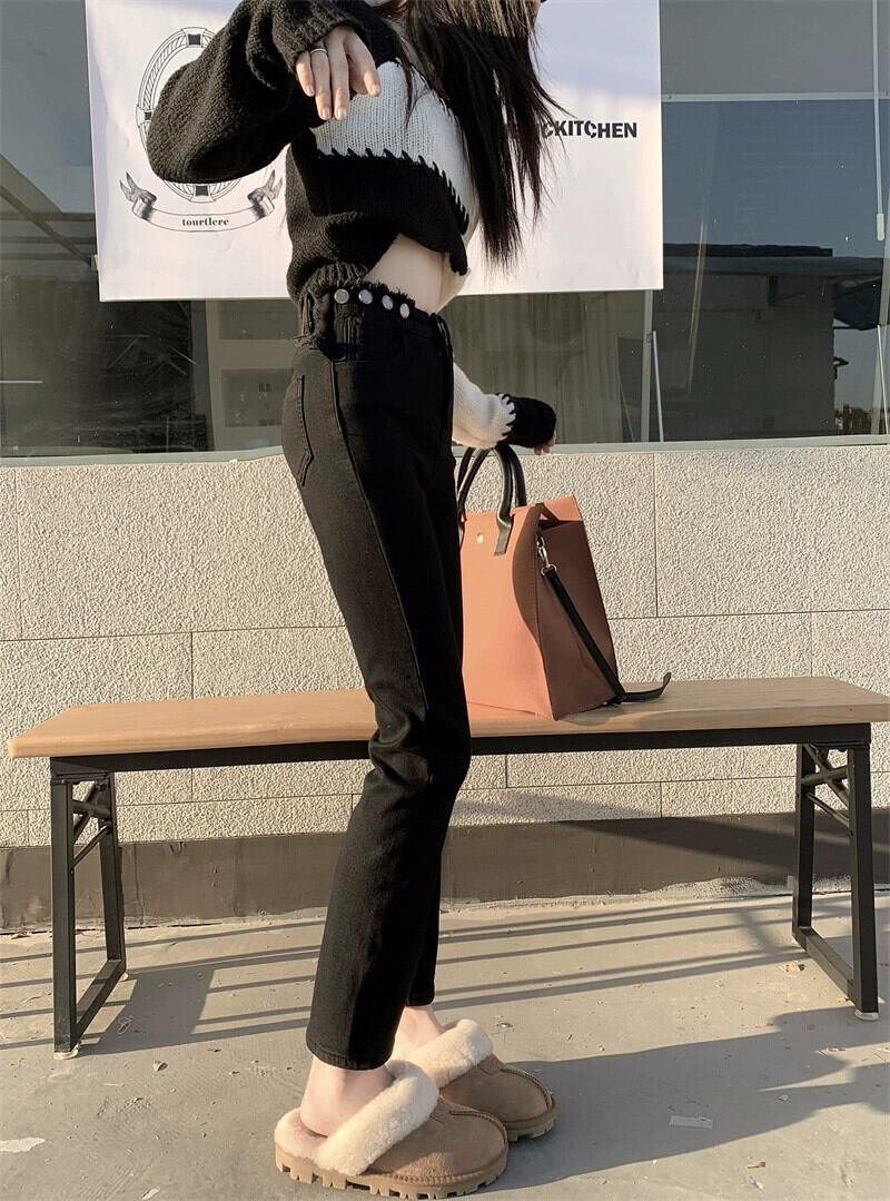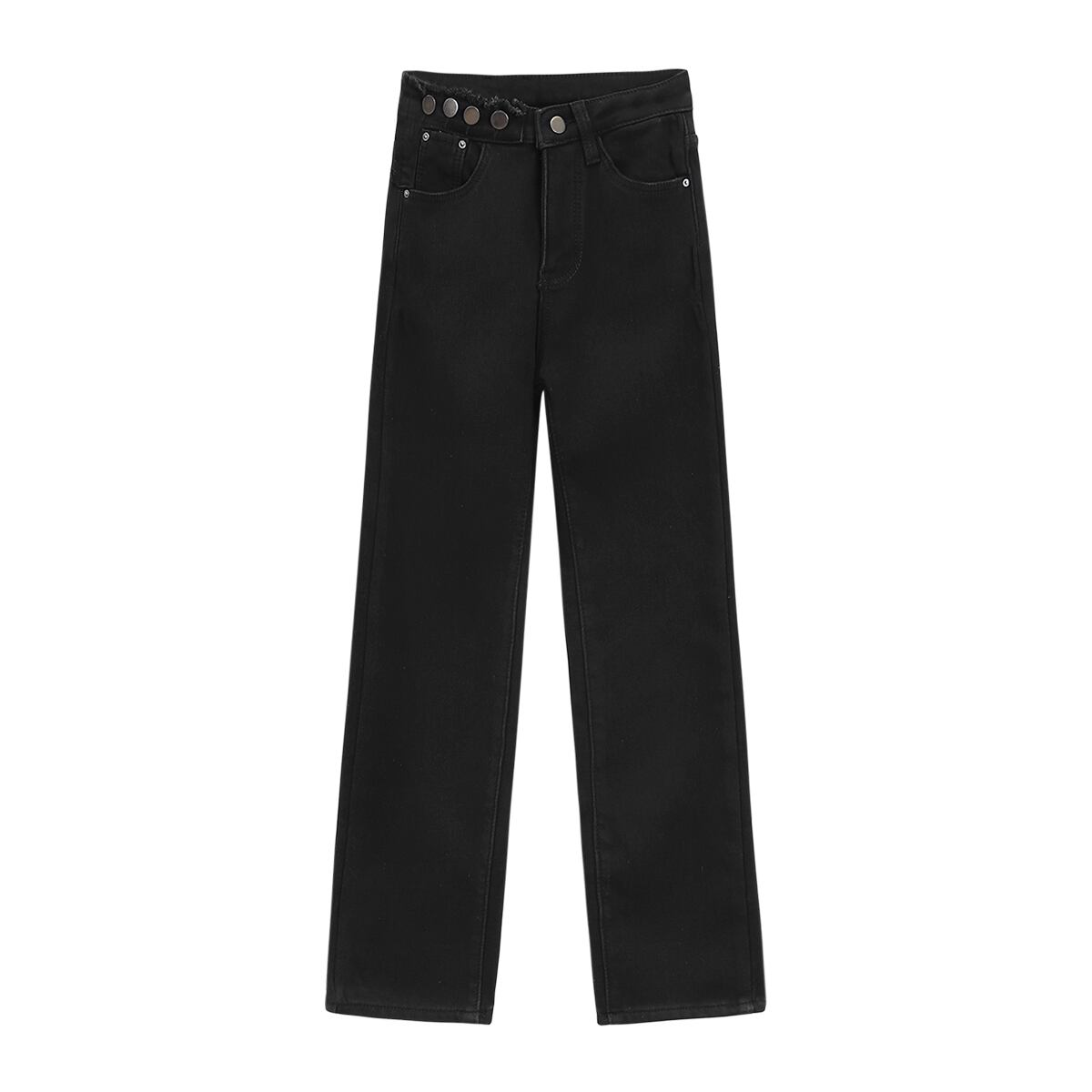 ベルベット肥厚ジーンズ女性、秋バージョン 2024 新しいハイウエストスリム黒 9 ポイントシガレットパンツストレートパンツ ブラック オータム 秋物 missk83462287894