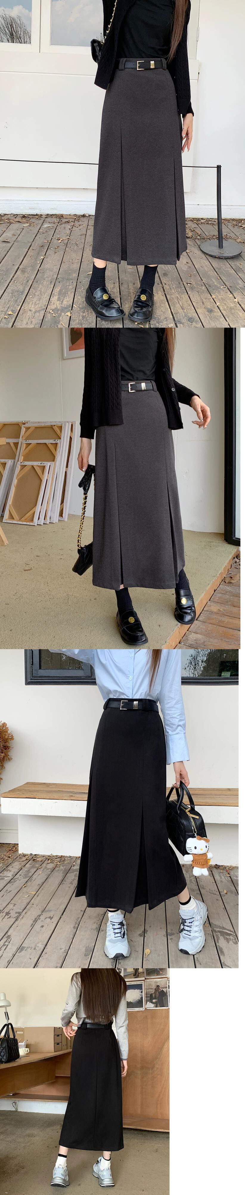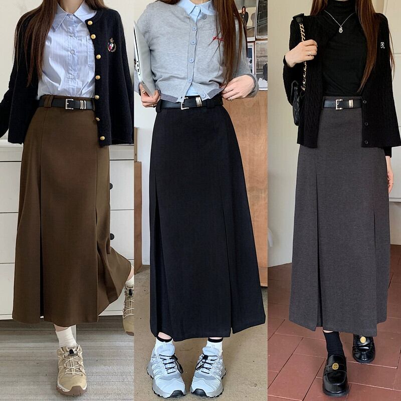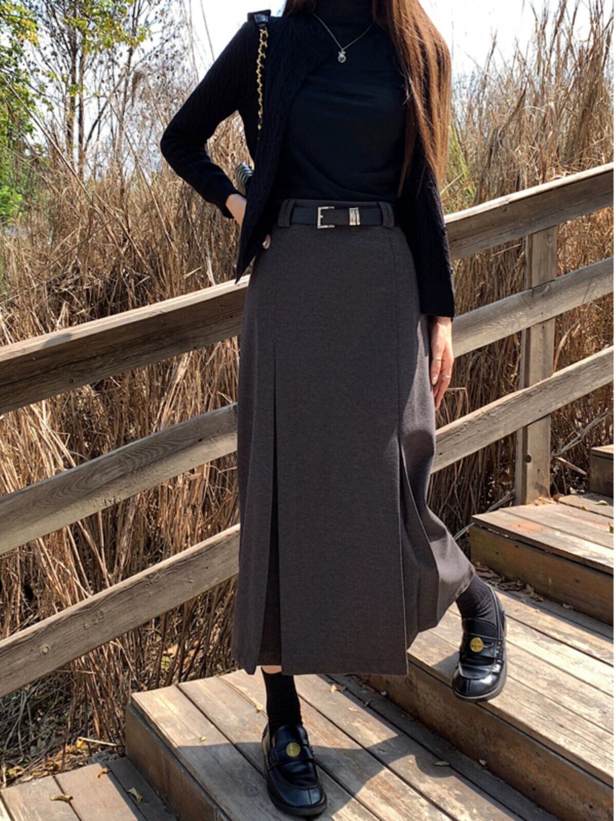 ウールのレトロなストレートスカートの女性の 2024 秋の新しいハイウエストスリムプリーツデザインのミドル丈スカート オータム 秋物 missk87219787984