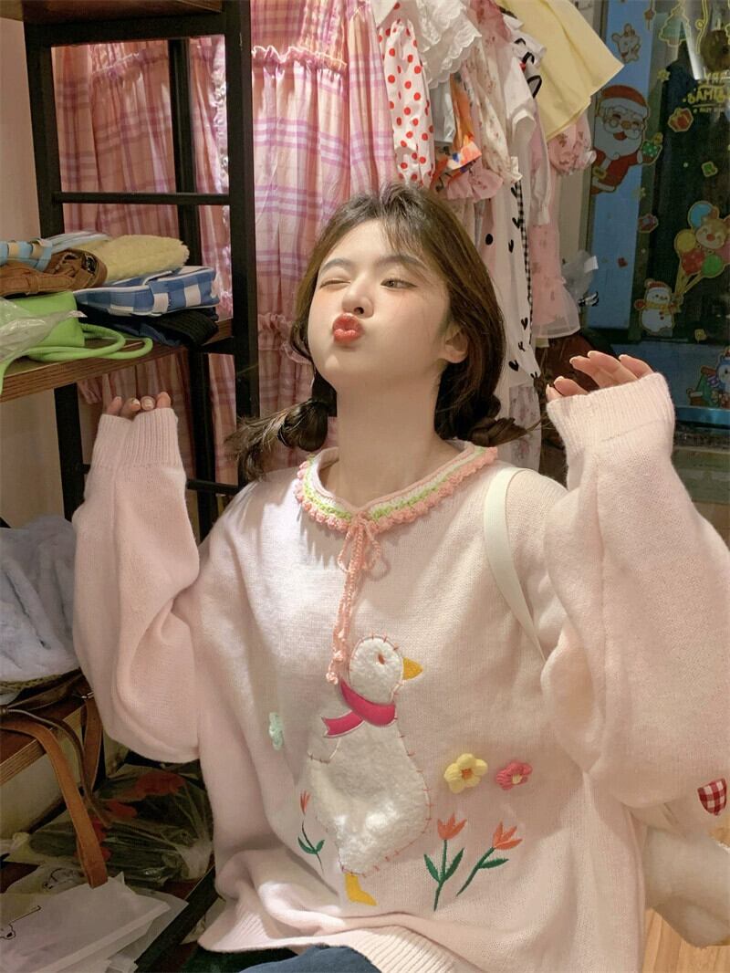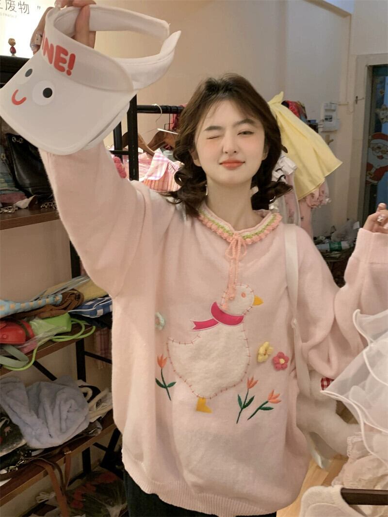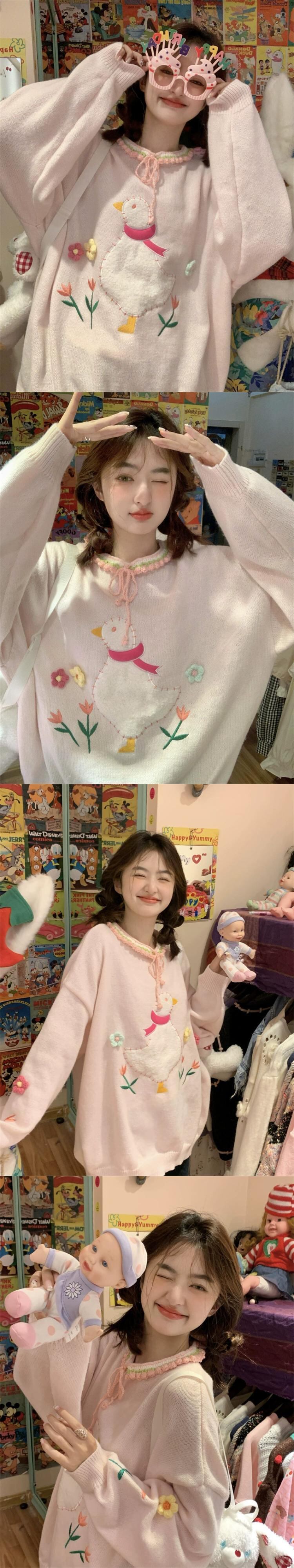色:ピンクのアヒルのセーター