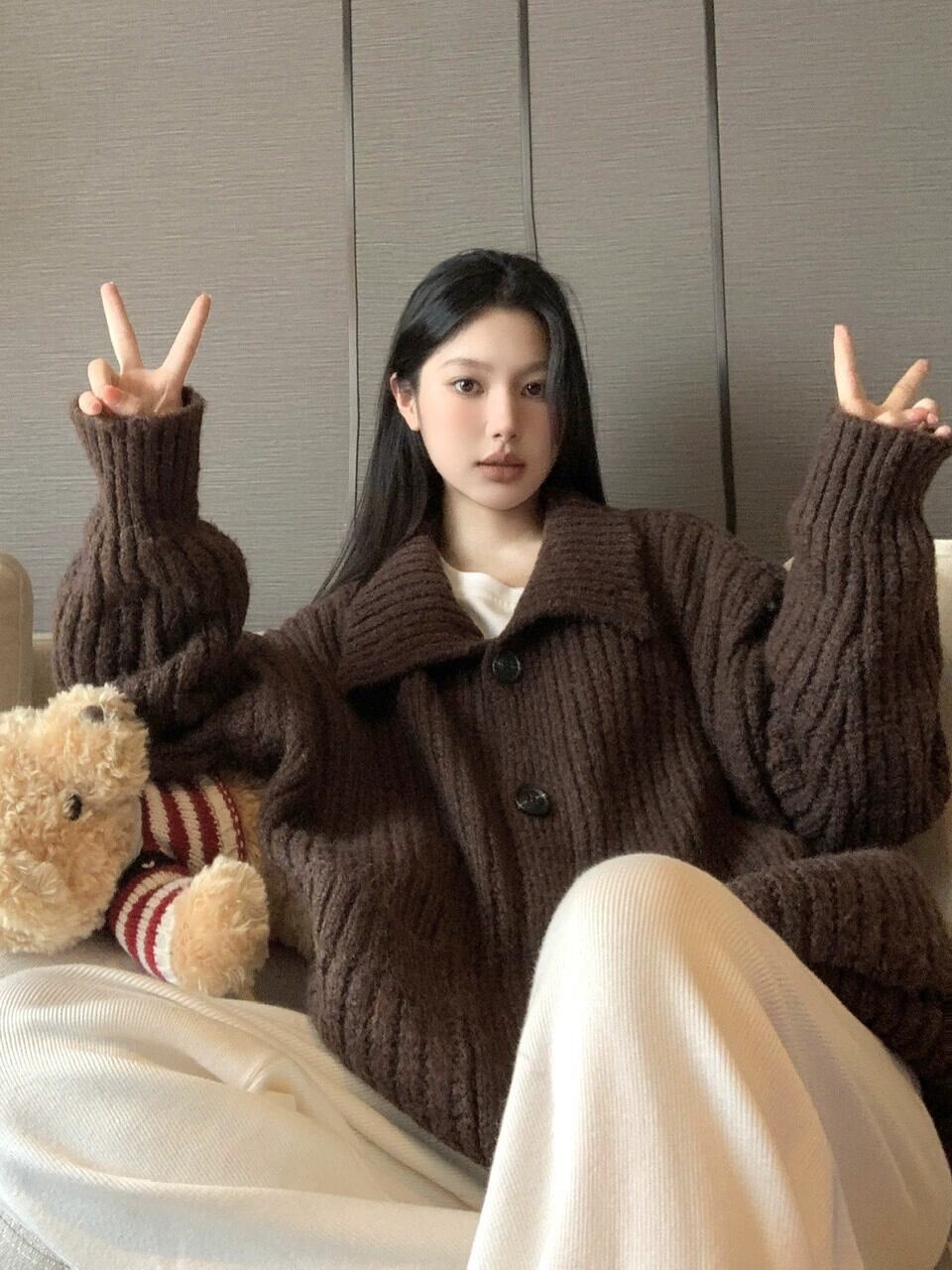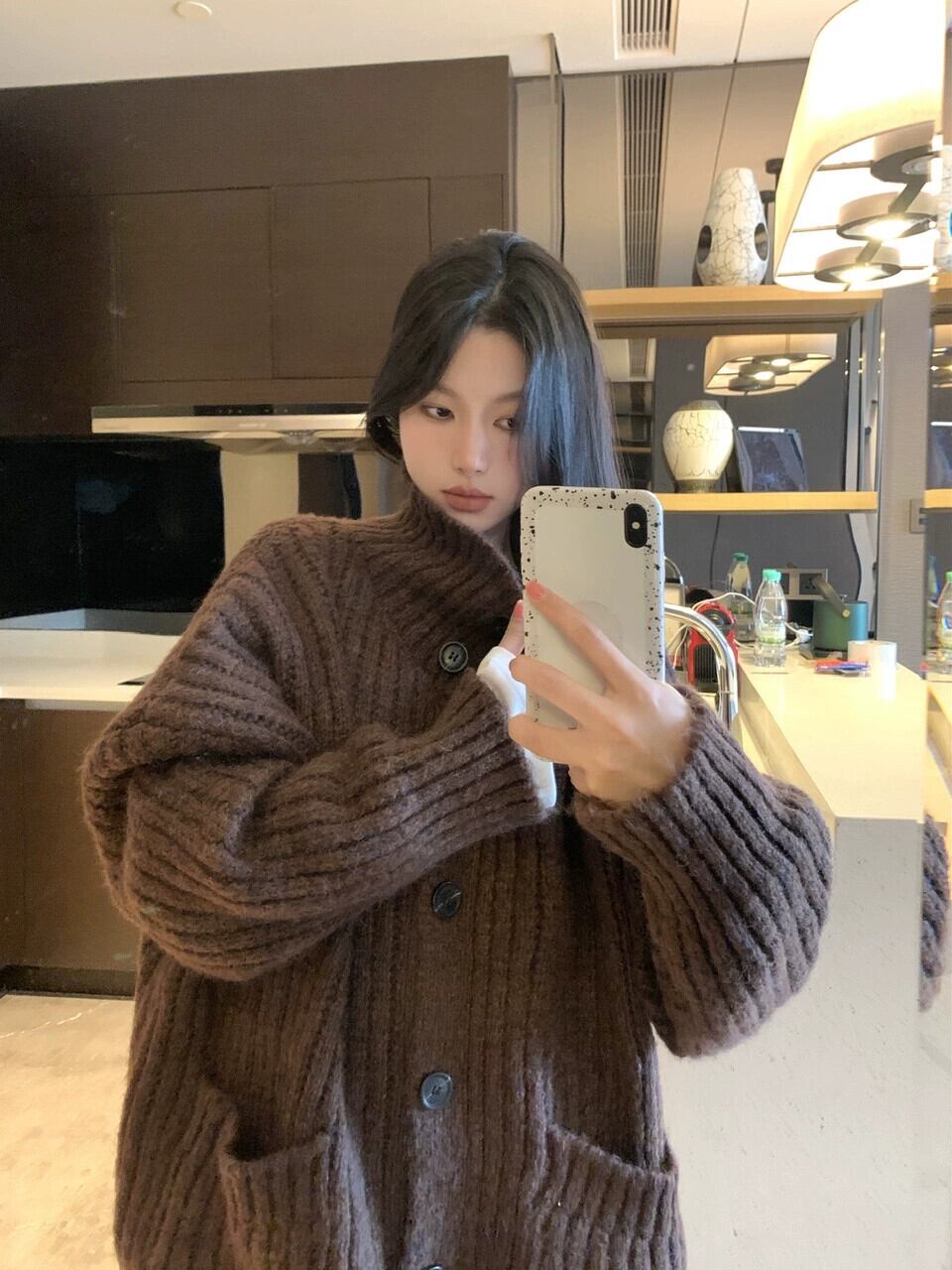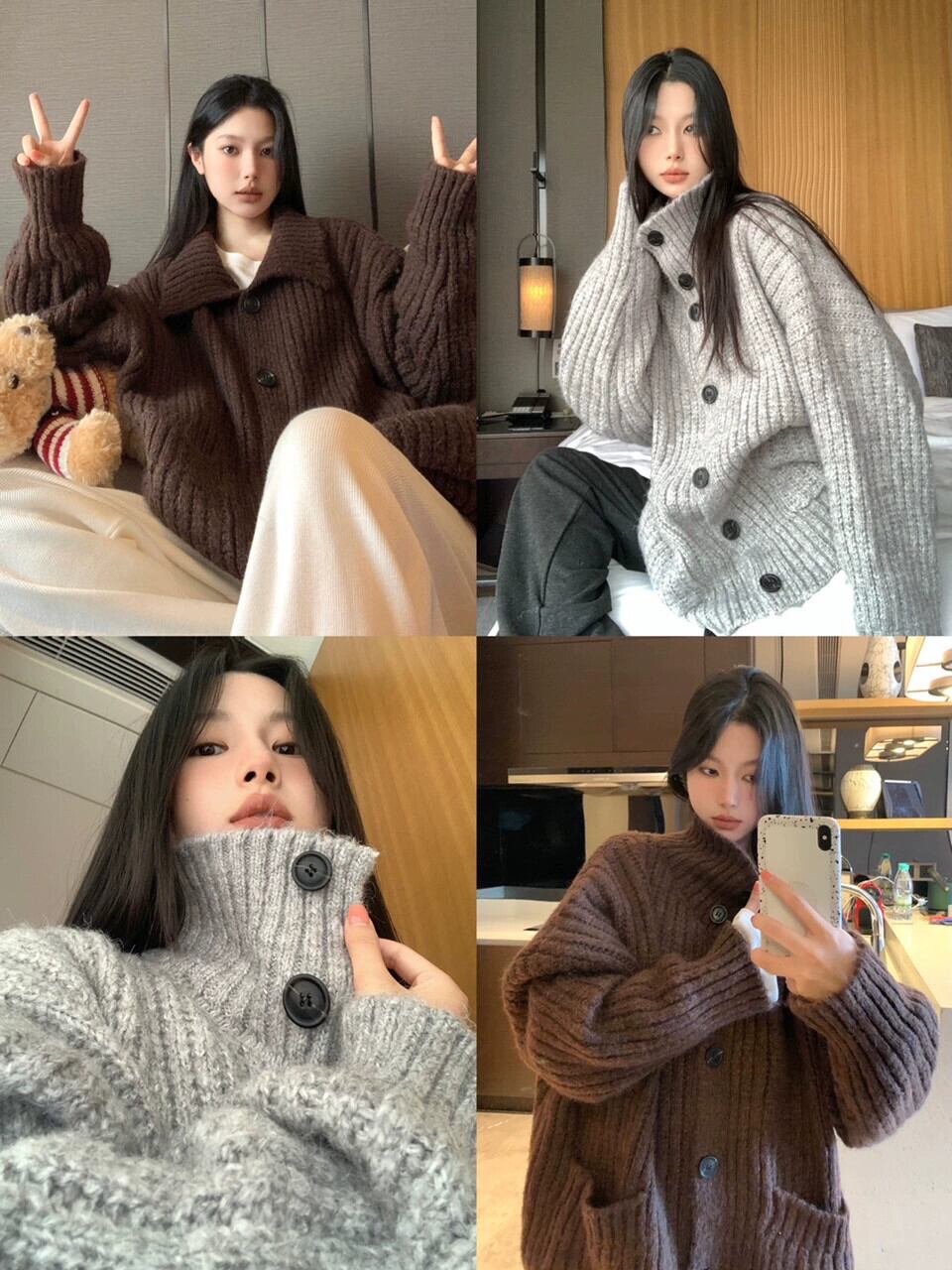 メイラードタートルネック長袖セーターカーディガン女性秋冬 2024 新しいスタイルシングルブレストルーズ多目的コートトップトレンディ ロング オータム 秋物 ウィンター 冬物 missk92902865716