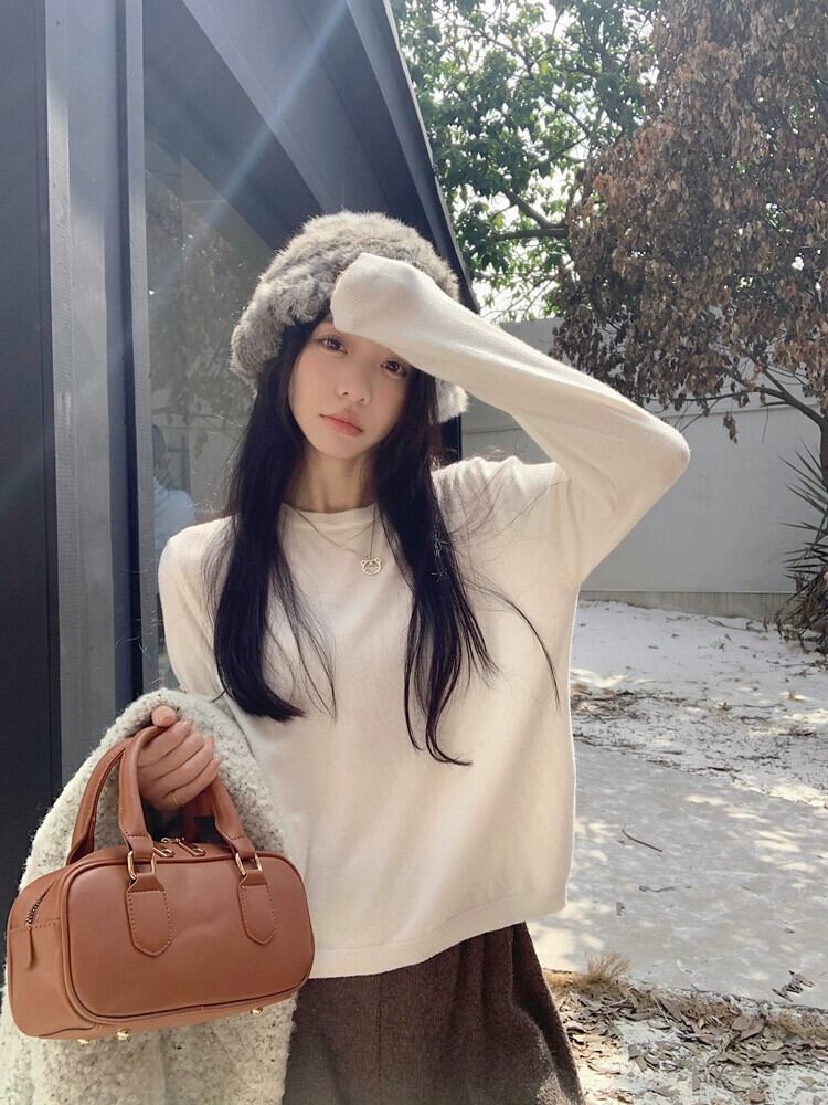 ミスココリ秋と冬 2024 新しいショートスリムフィットセーターラウンドネック長袖セータートップボトシャツ女性 ロング オータム 秋物 ウィンター 冬物 Oネック missk4642967591