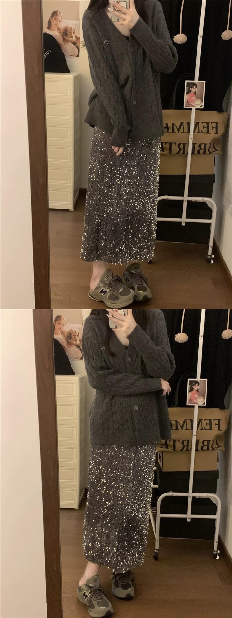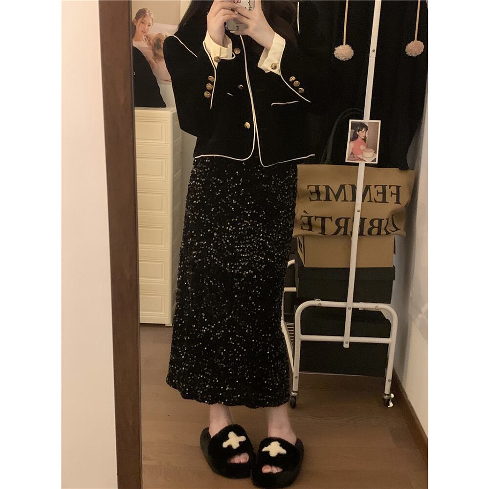 ベルベットの光沢のあるヒップ抱きスカートの女性の秋と冬の 2024 新しいファッションスタイルのスリット弾性ハイウエストミッドレングススカート ハイウェスト エラスティック 伸縮 オータム 秋物 ウィンター 冬物 missk41638922695