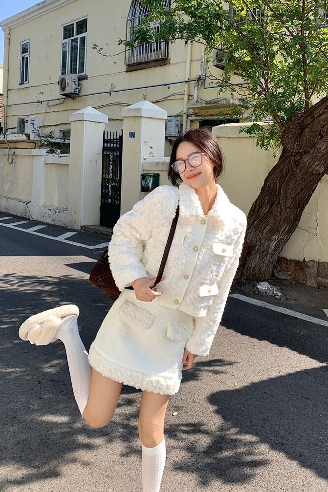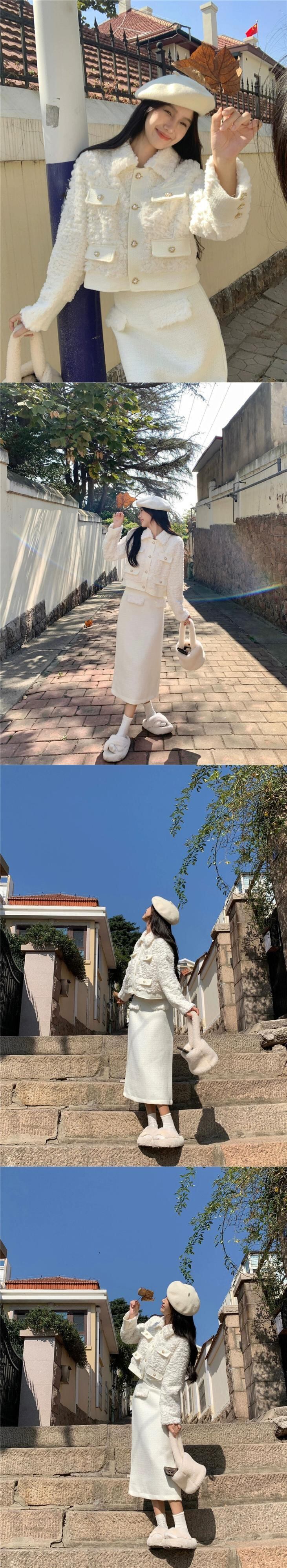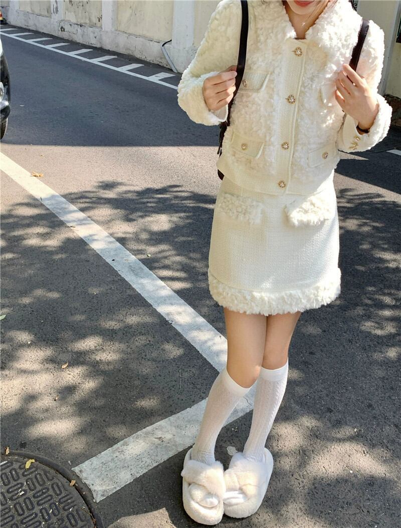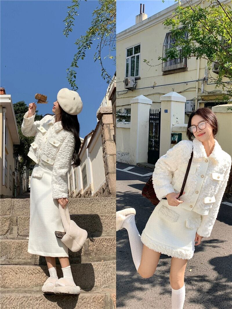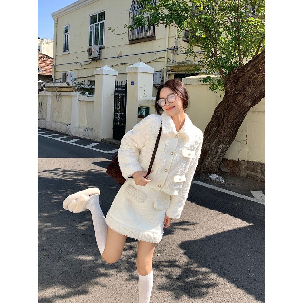 Xiaoxiangfeng 毛皮のような気質長袖ジャケットヒップカバーハーフレングススカート女性の秋と冬の 2024 新しいファッションツーピースセット ロング オータム 秋物 ウィンター 冬物 missk27503990085