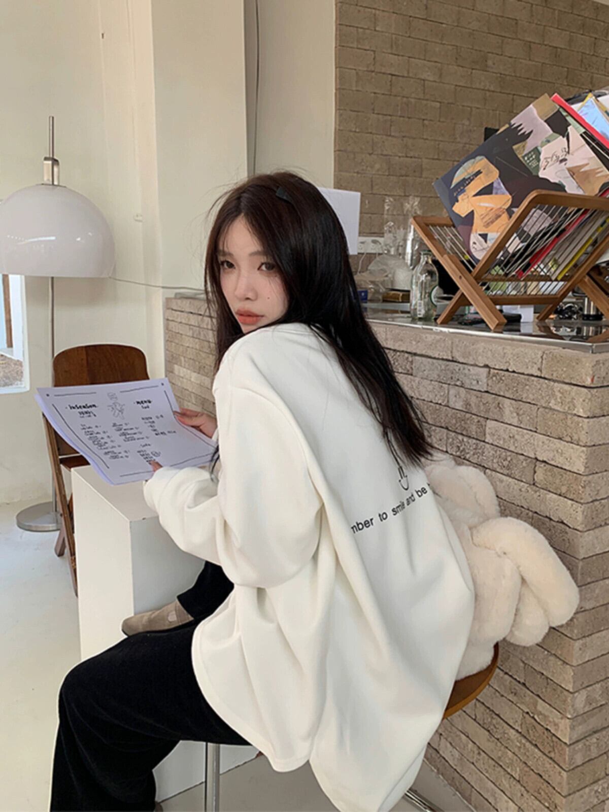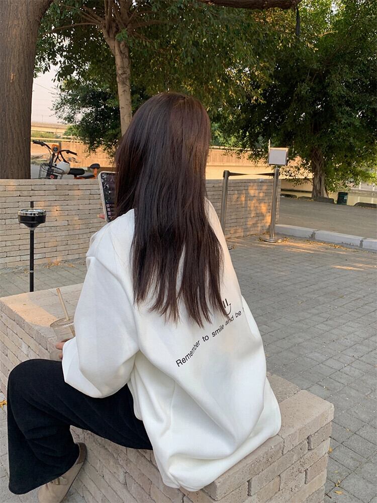 厚いベルベット Tシャツの女性の秋バージョン 2024 新しいスマイリーフェイスプリントルーズミッドレングス BF スタイル長袖トップ ロング オータム 秋物 missk80277585971