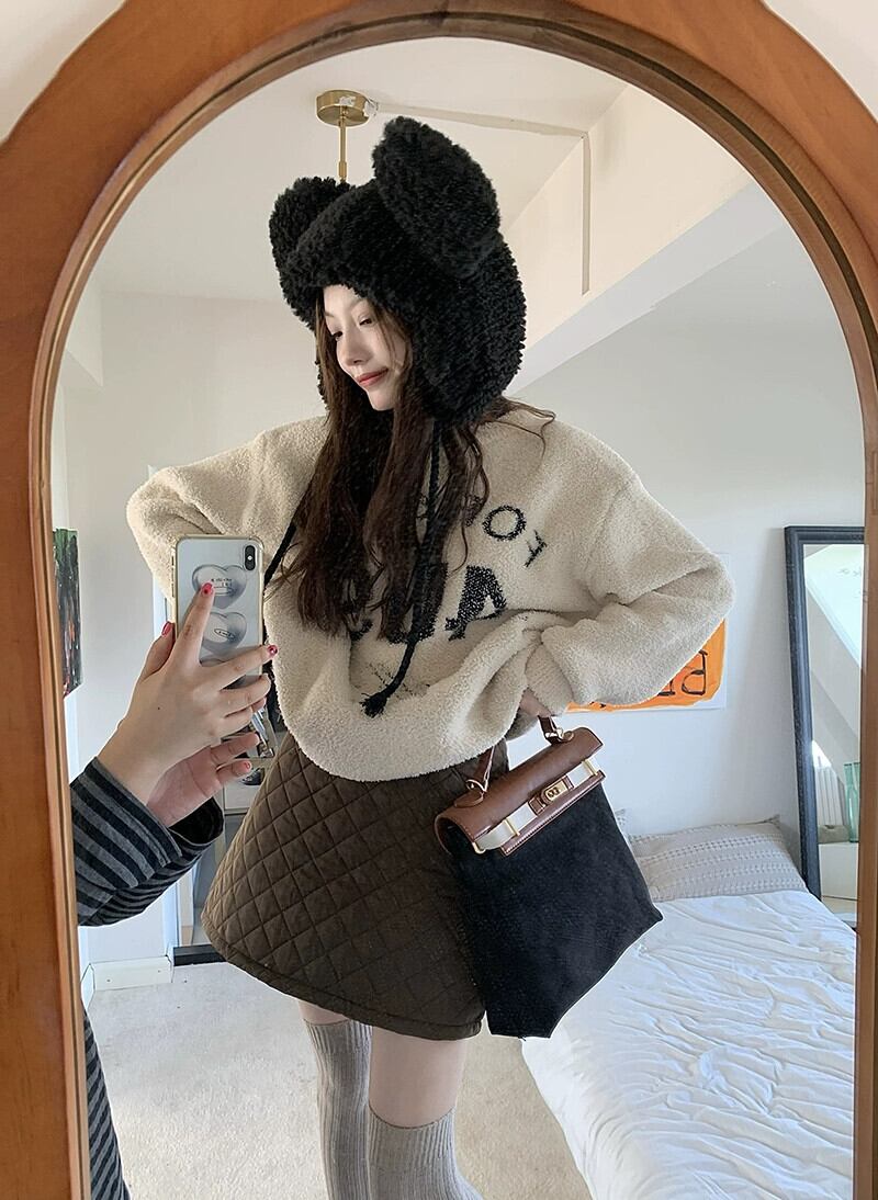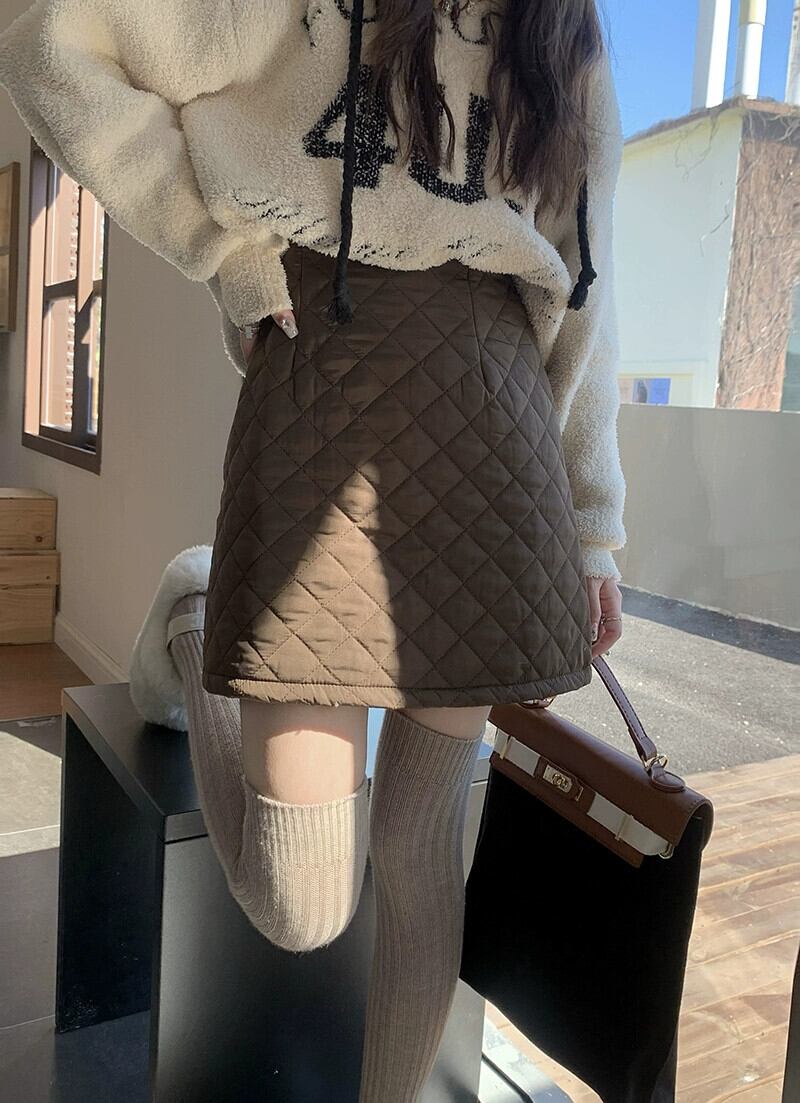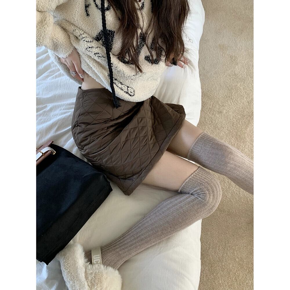 レトロキルトスカート女性の秋冬 2024 新しいハイウエスト痩身デザイン菱形ヒップボトミングスカート オータム 秋物 ウィンター 冬物 missk86315086488