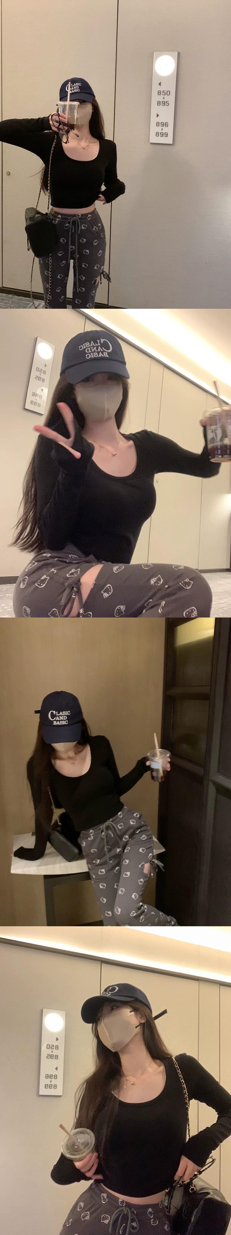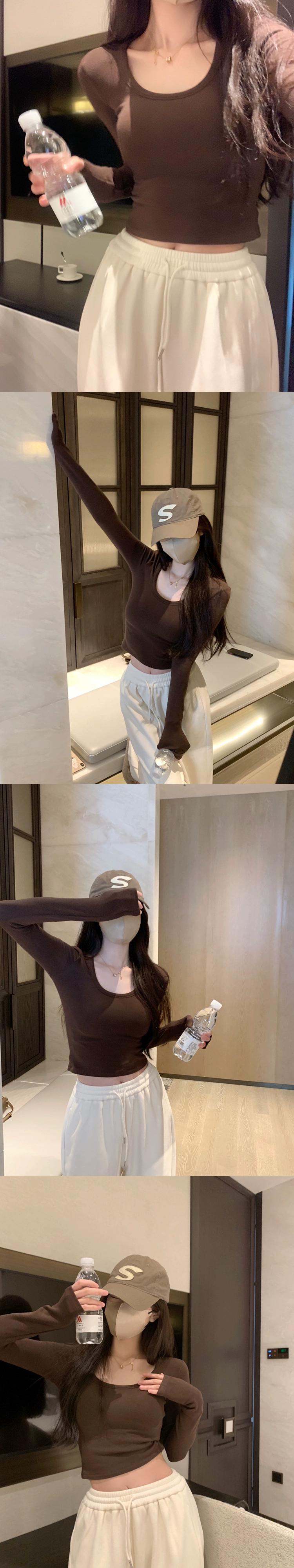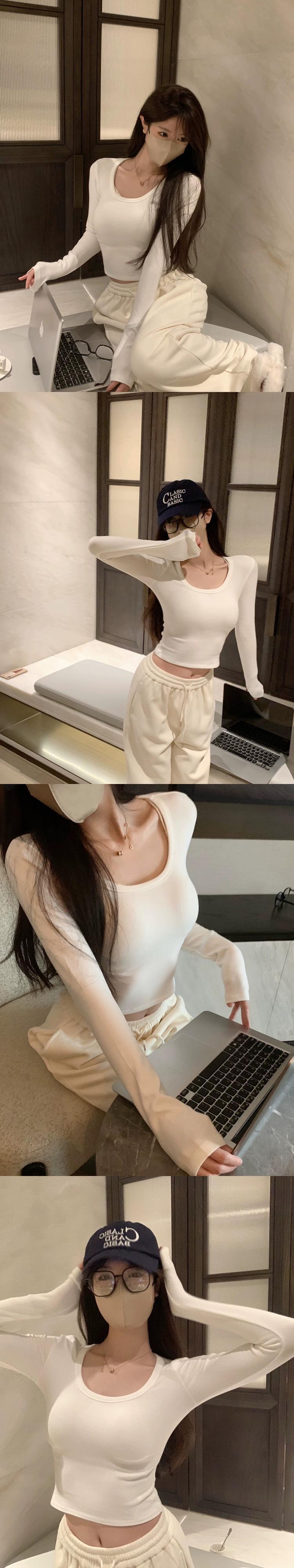 Uネック長袖Tシャツレディース秋バージョン2024新しいスタイルベルベット厚みのあるショートスタイル慎重なインナーウェアベースシャツトップ ロング オータム 秋物 missk94441353405