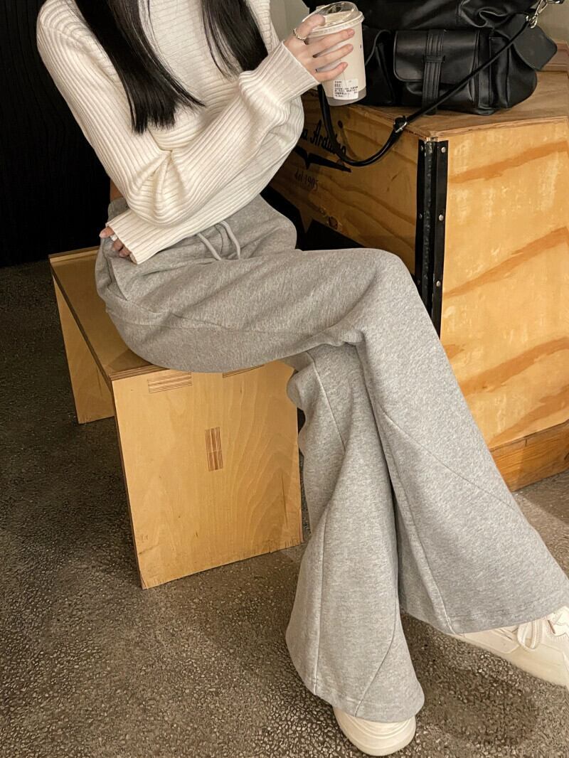 ベルベットと厚みのあるベルボトムパンツの女性、2024年秋冬バージョンの新しいハイウエストスリムデザインルーズワイドレッグカジュアルパンツ オータム 秋物 ウィンター 冬物 missk88197184210